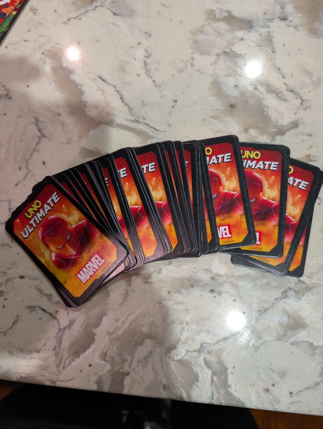 Selling a 48 used UNO Ultimate Marvel card game set! It's a fun twist on the classic UNO game with a Marvel theme. The cards feature iconic Marvel characters, adding an exciting element to the gameplay. Great for family game nights or Marvel fans