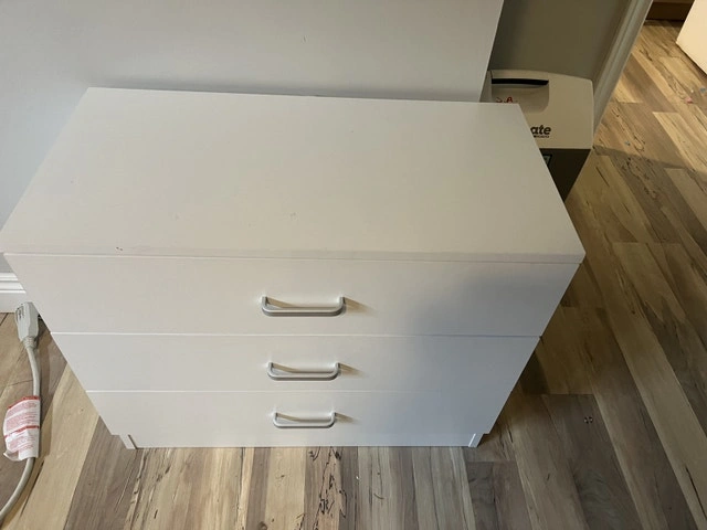 Small white dresser. Hardly used. Great for baby, toddler clothes or as decorative peice with light storage. Ordered from Wayfair less than a year ago.