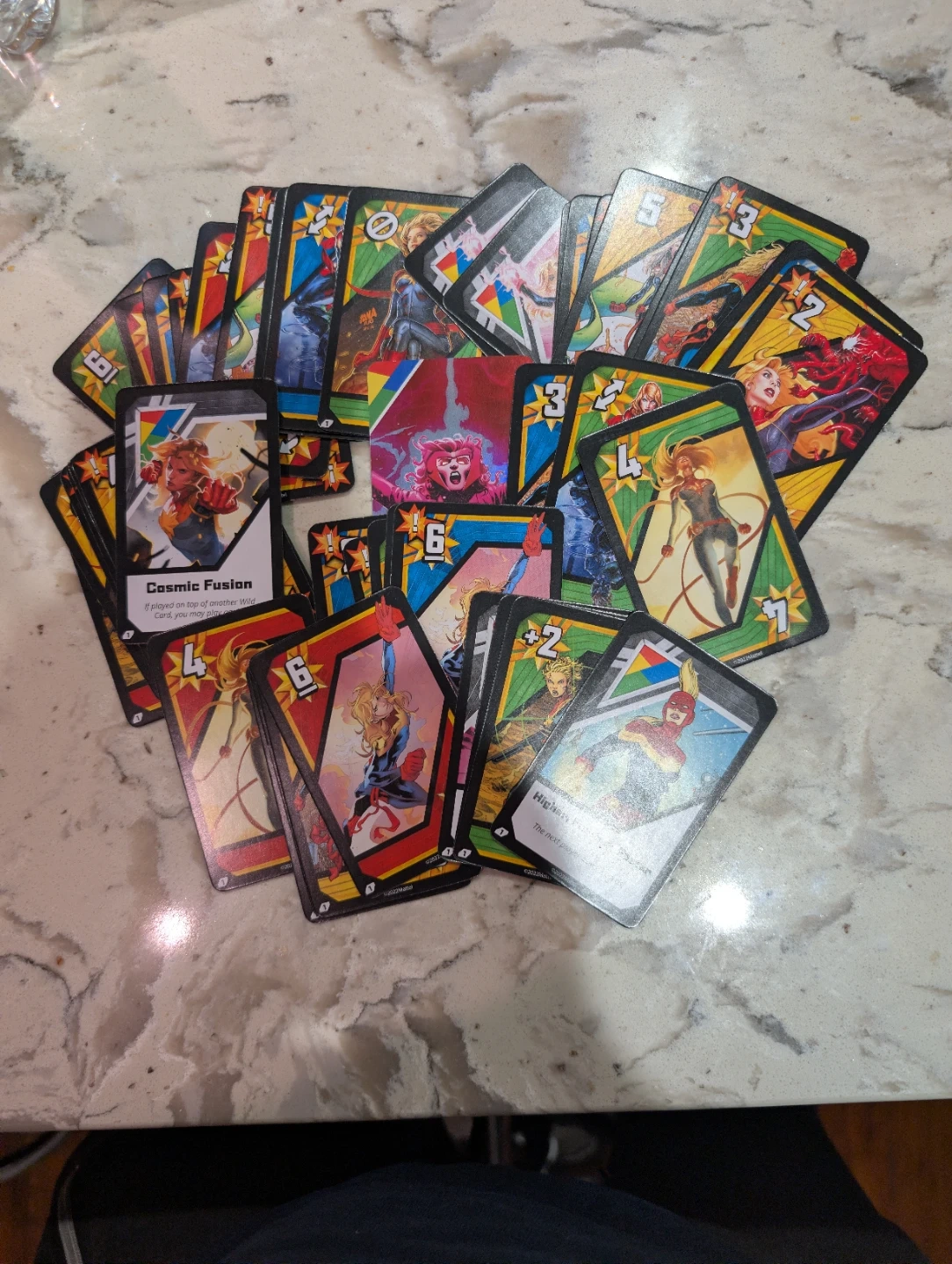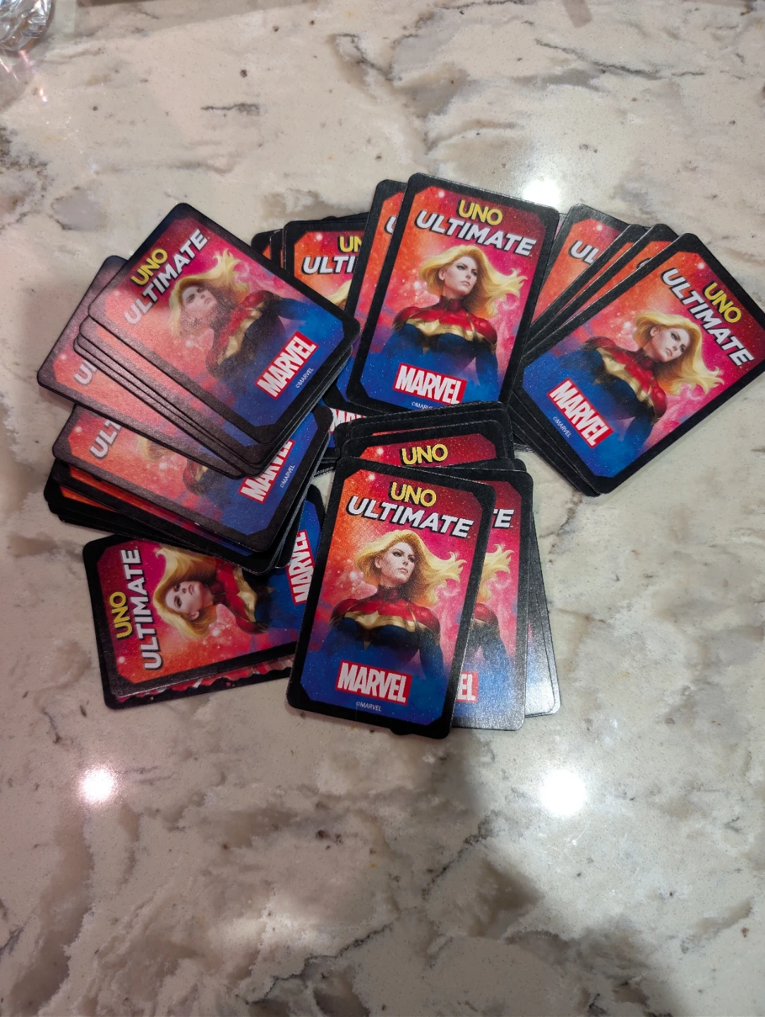 Selling a 48 used UNO Ultimate Marvel card game! All cards are included and in good condition. Perfect for family game night or a fun activity with friends who love Marvel