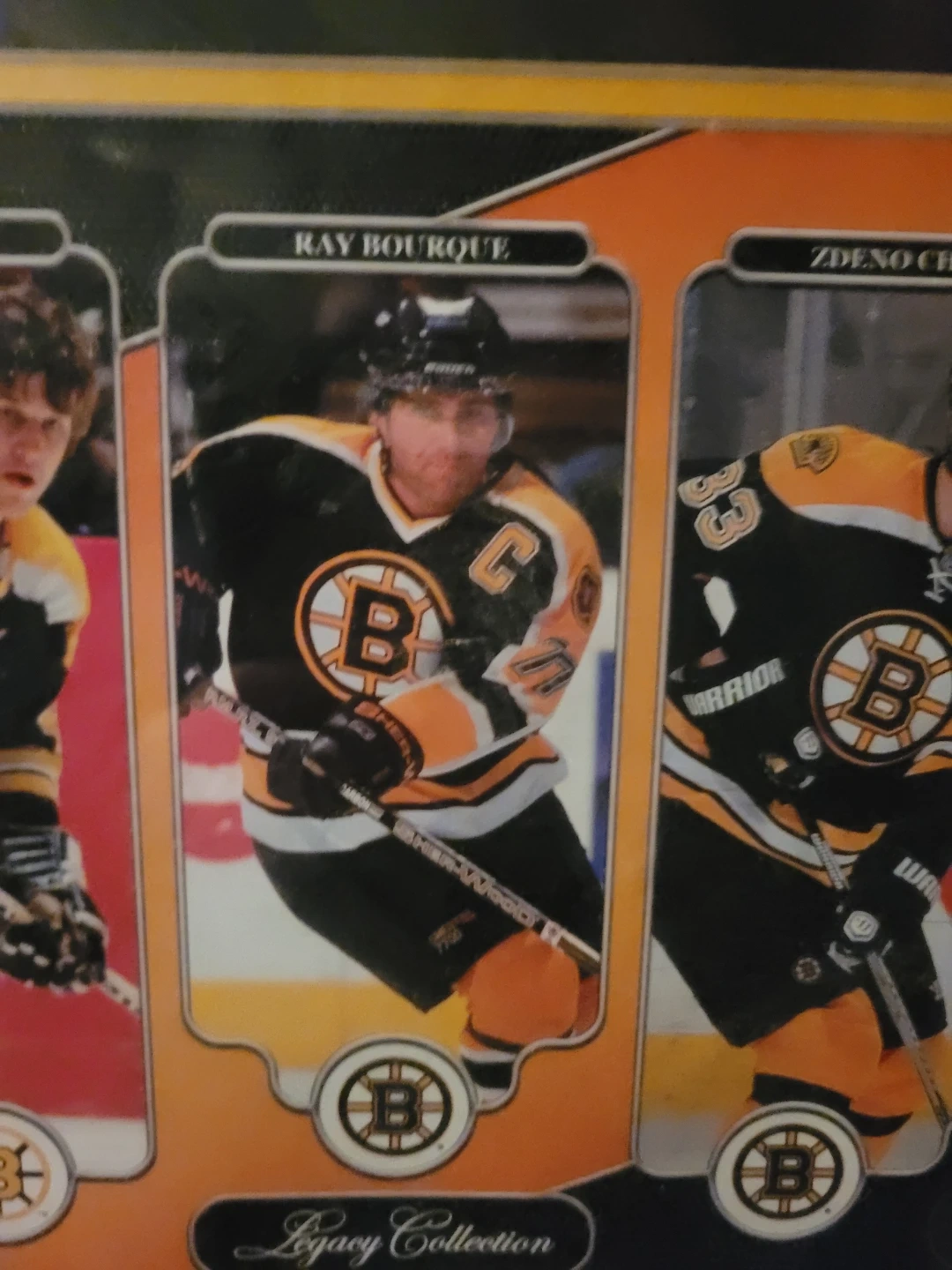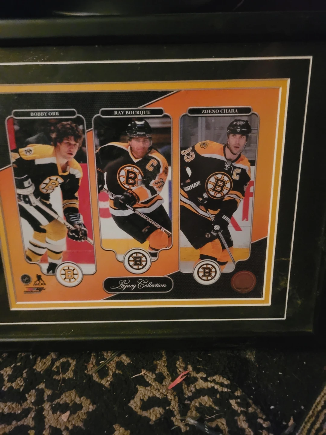 Selling a framed picture from the Boston Bruins Legacy Collection. It features Bobby Orr, Ray Bourque, and Zdeno Chara. A great piece for any Bruins fan!