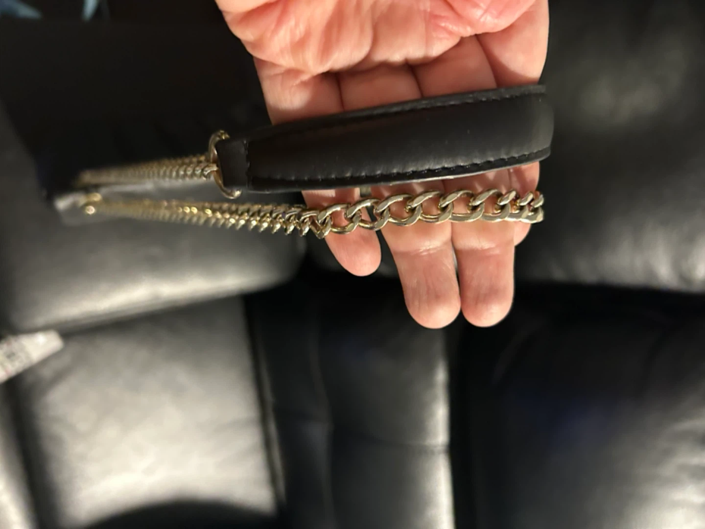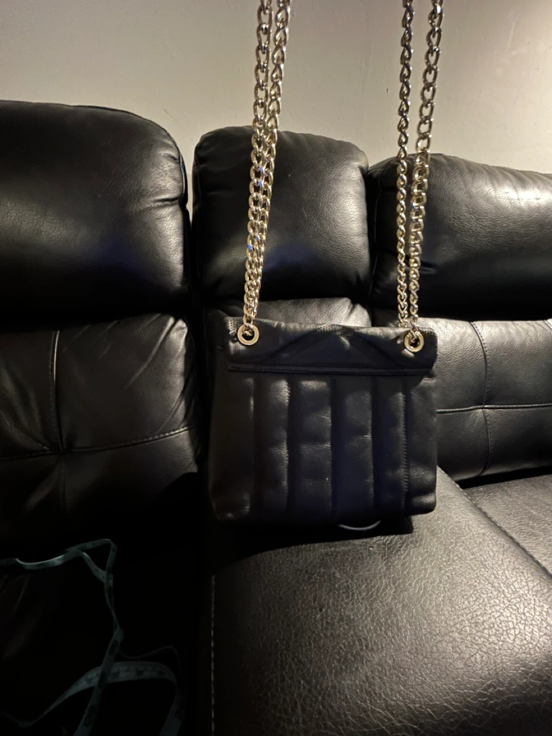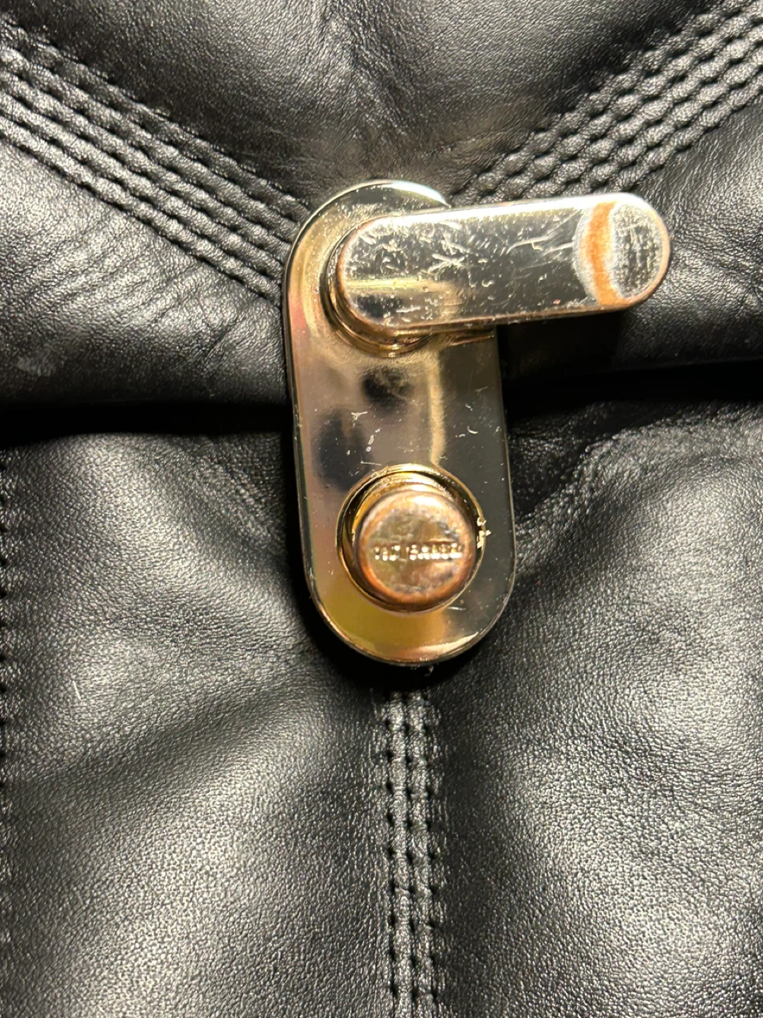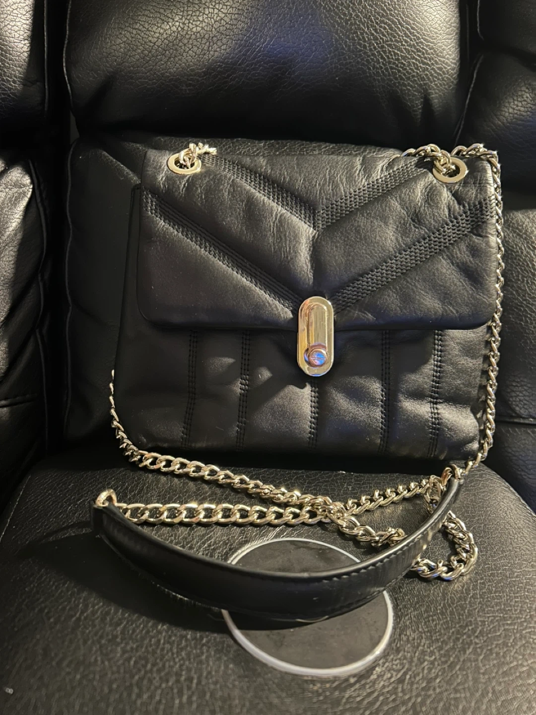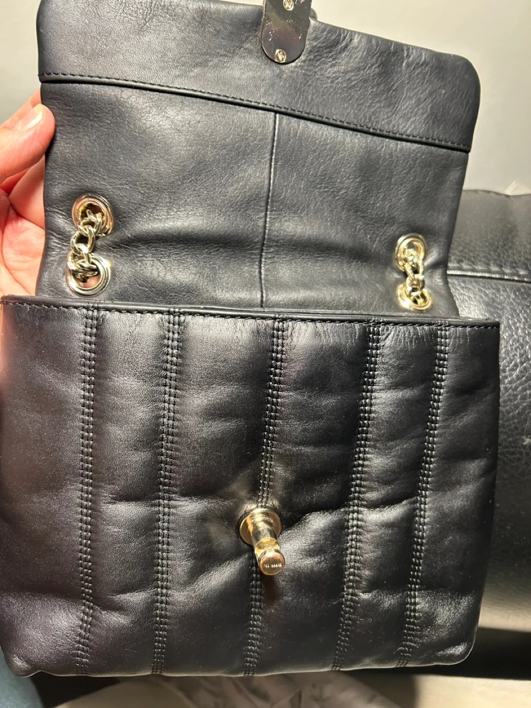 Selling a lovely black leather shoulder bag from Ted Baker. It's in great condition and would be perfect for everyday use or a night out! The chain detailing adds a touch of elegance, and the interior is nice and clean. It's in very good condition; the only issue is that the small plate has lost its gold color. 22 cm wide x 15 cm high. I invite you to view my other items; if you are interested in any of them, I will give you a better price.