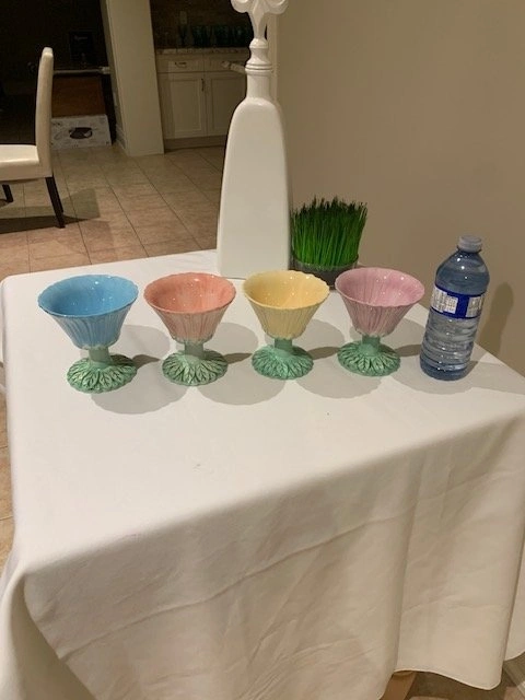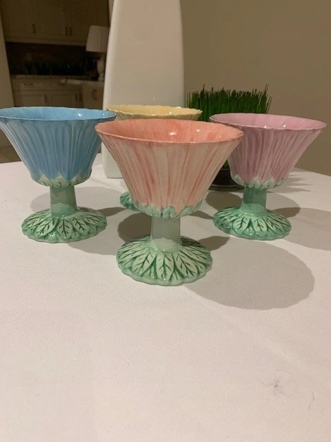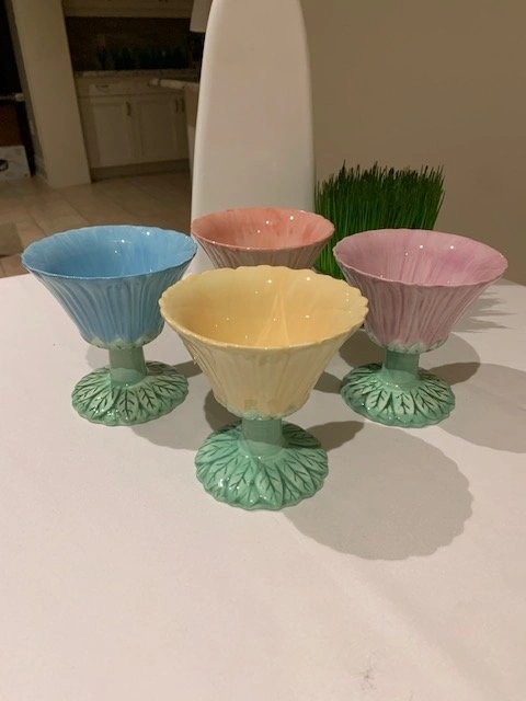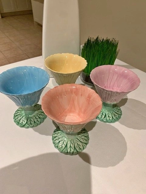 Vintage Pedestal Bowls Trompe L ' Oeil Boho Chic