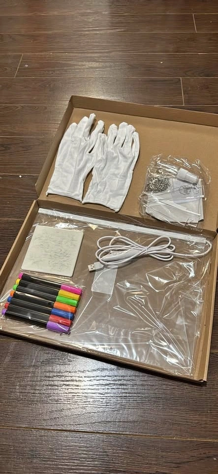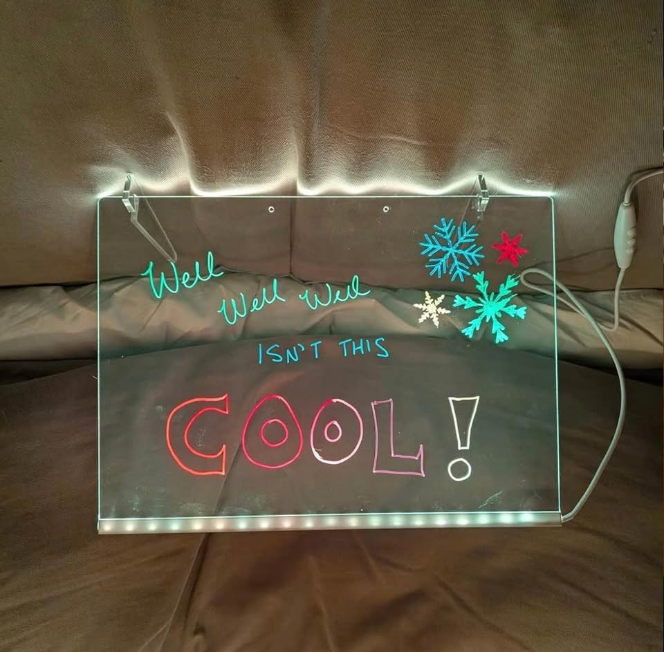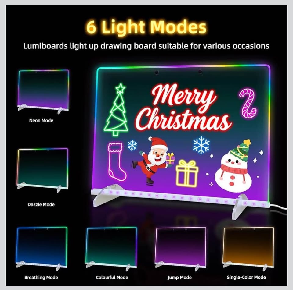 COMPLETE KIT: Includes LED message board, colourful markers, protective white gloves, and festive holiday-themed stencils for creative displays