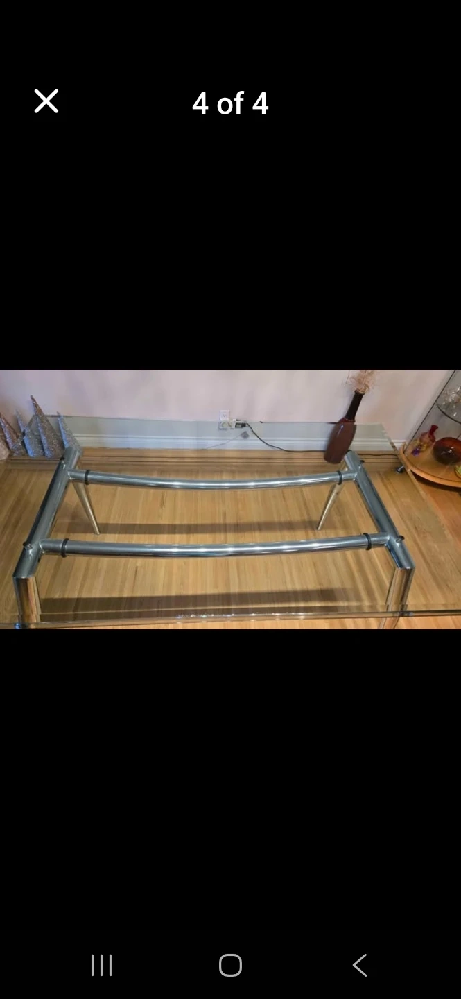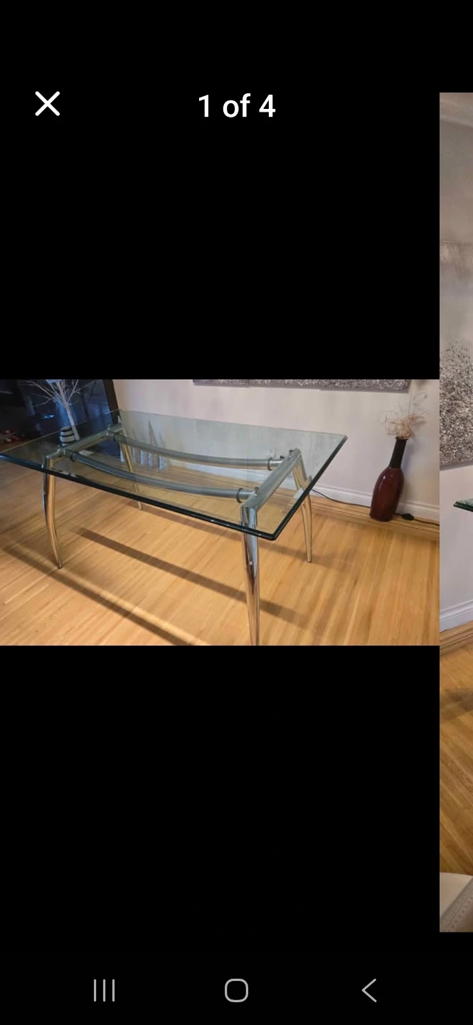 Selling a glass top dining table with chrome legs. It's in good condition and would be a nice addition to any dining room!