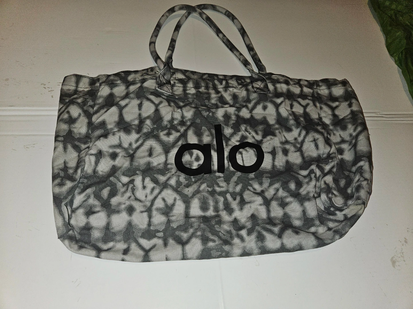 Selling an Alo Yoga tote bag with a tie dye pattern! It's in great condition and made of 100% cotton. The size is one size, perfect for carrying your essentials to yoga or the gym