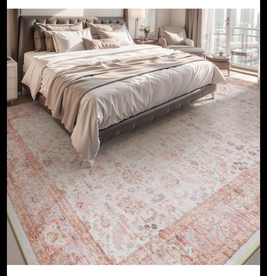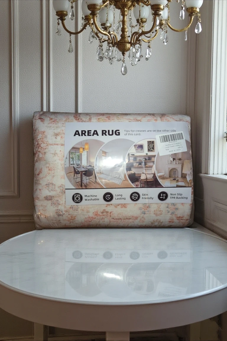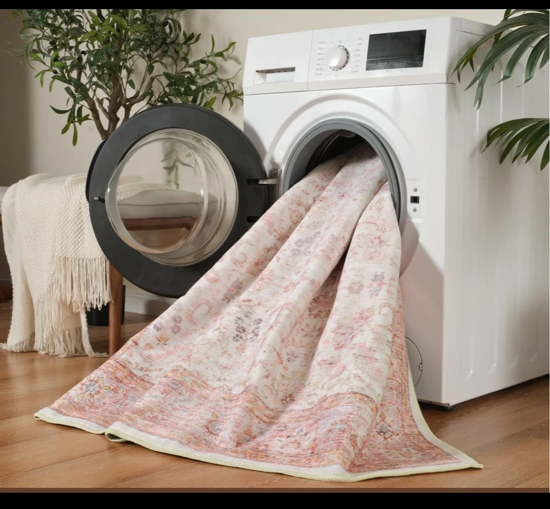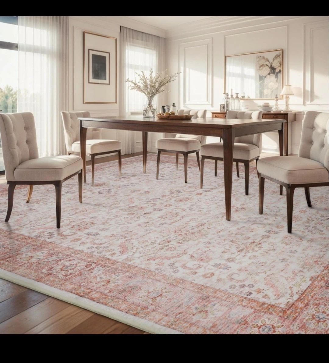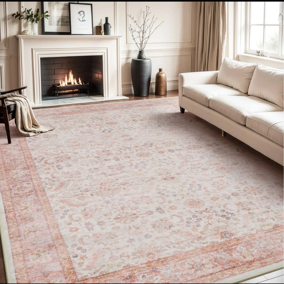 Brand new in plastic vintage-style Persian rug in cream with faded pink and terracotta patterns and a warm border. It already looks a little “worn,” which is perfect. Because if you spill something, it doesn’t get ruined. It just becomes more “vintage.” $150 and it's all yours👍