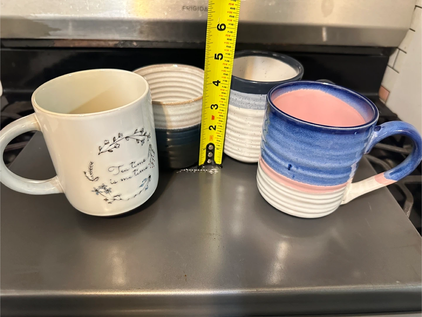 Each mug is about 4.5 inches tall and has a unique design and color. Perfect for adding some variety to your morning coffee or tea!