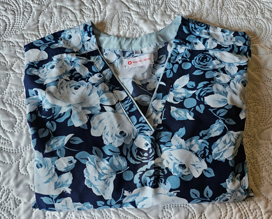 Two White Cross scrubs in excellent condition! One is a blue floral pattern, and the other is a fun unicorn print. Both are size XL.