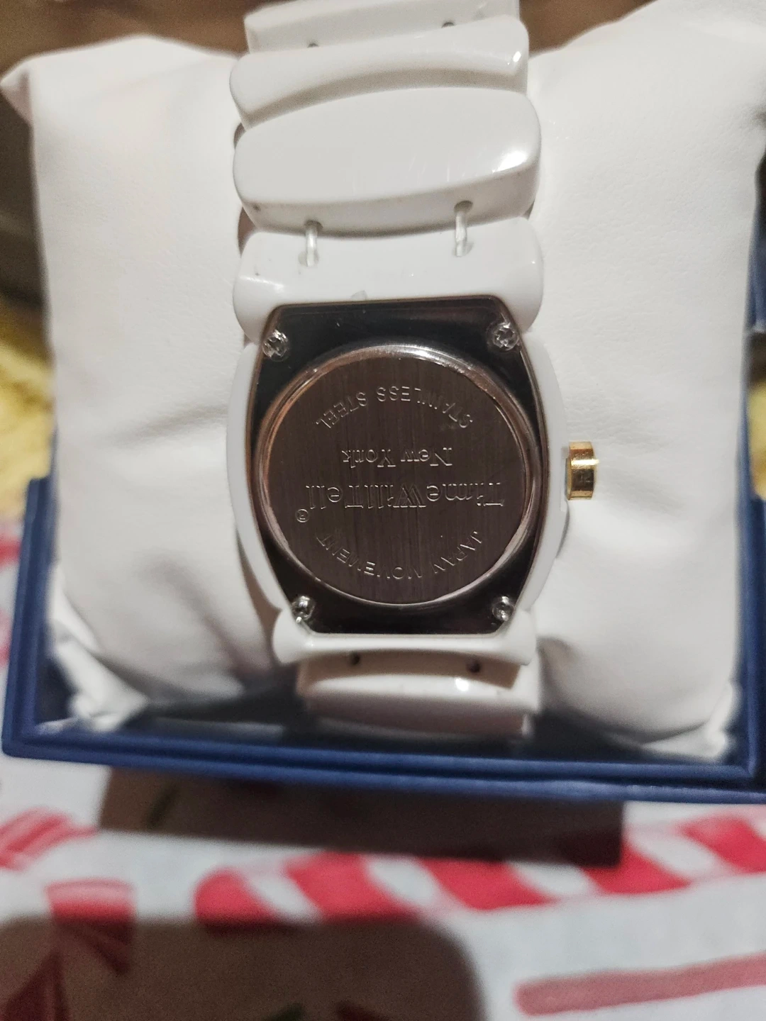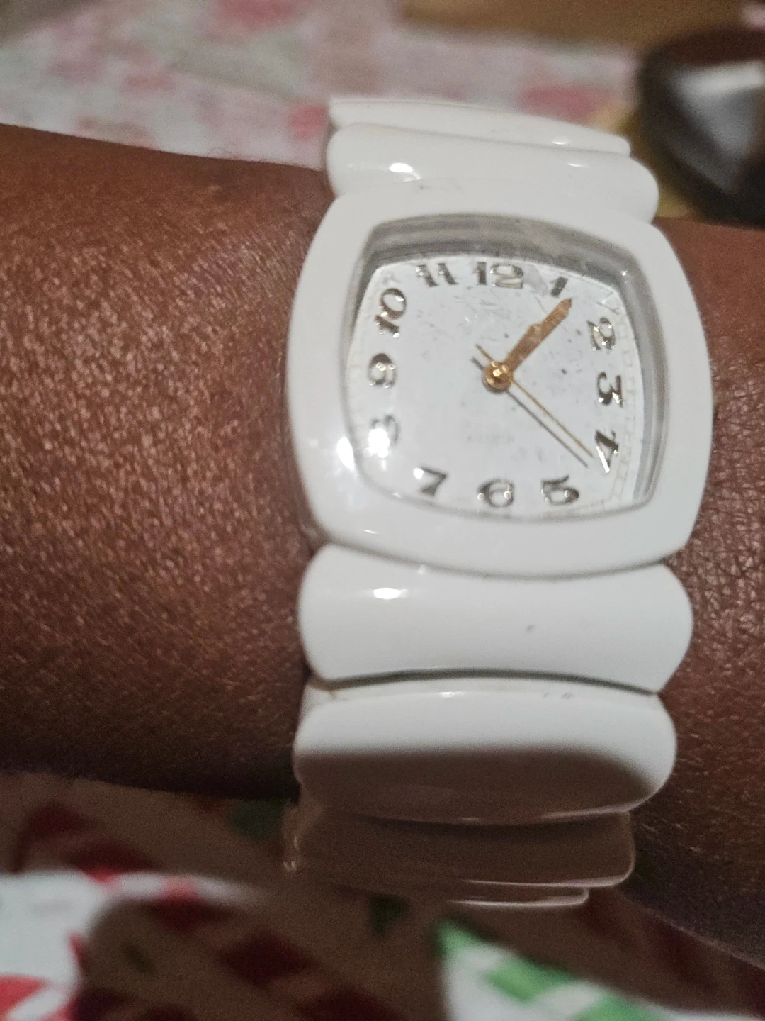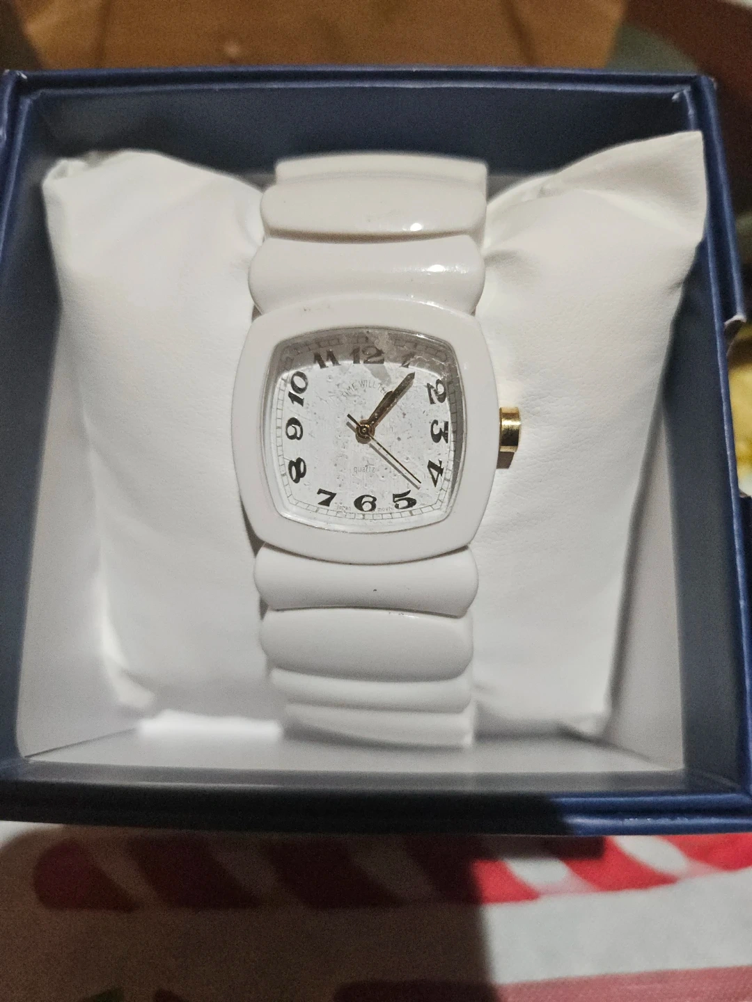 Selling a Time Will Tell watch in white ceramic. It comes with the original box. The back of the watch is stainless steel. A stylish accessory!