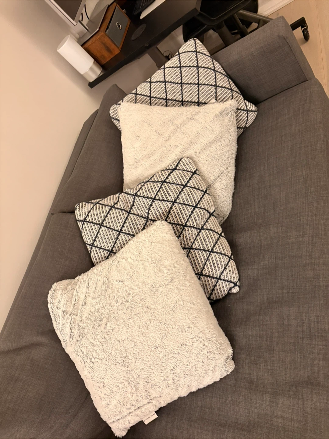 Giving away 4 decorative throw cushions, approx 18 x 18 inches.