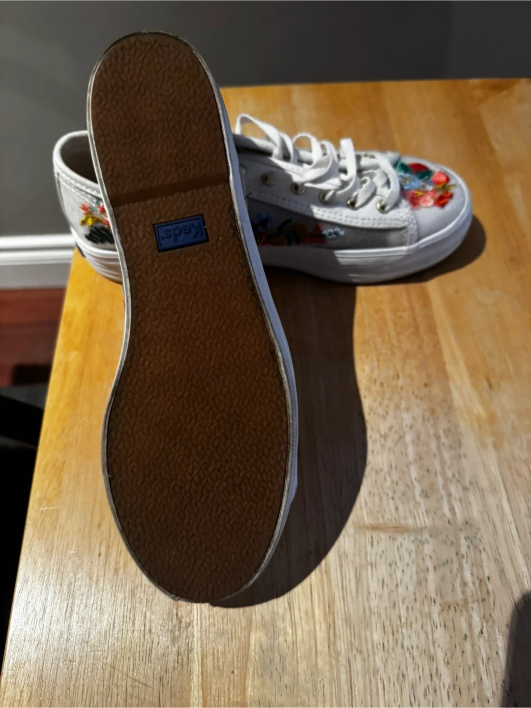 Keds Embroidered White Sneakers, Size 8