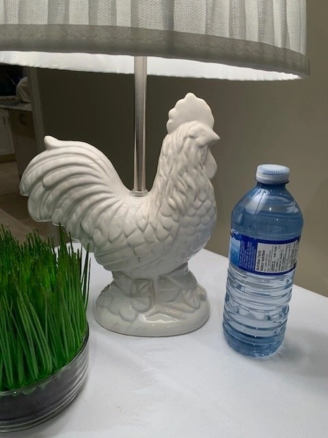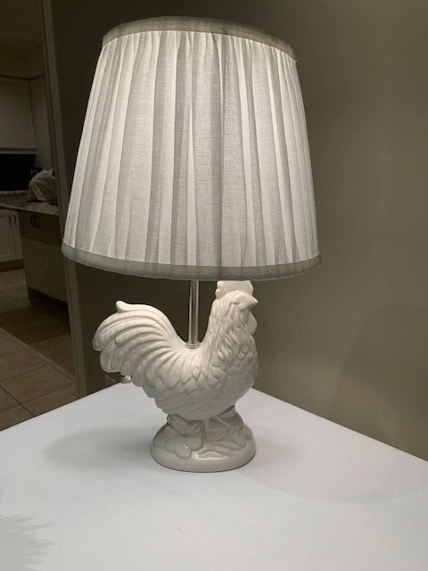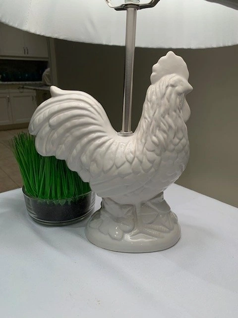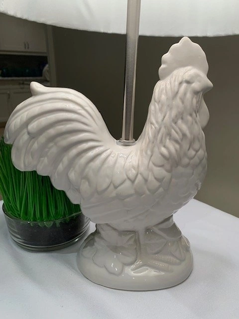 Table Lamp Rooster French Country White Ceramic Glaze