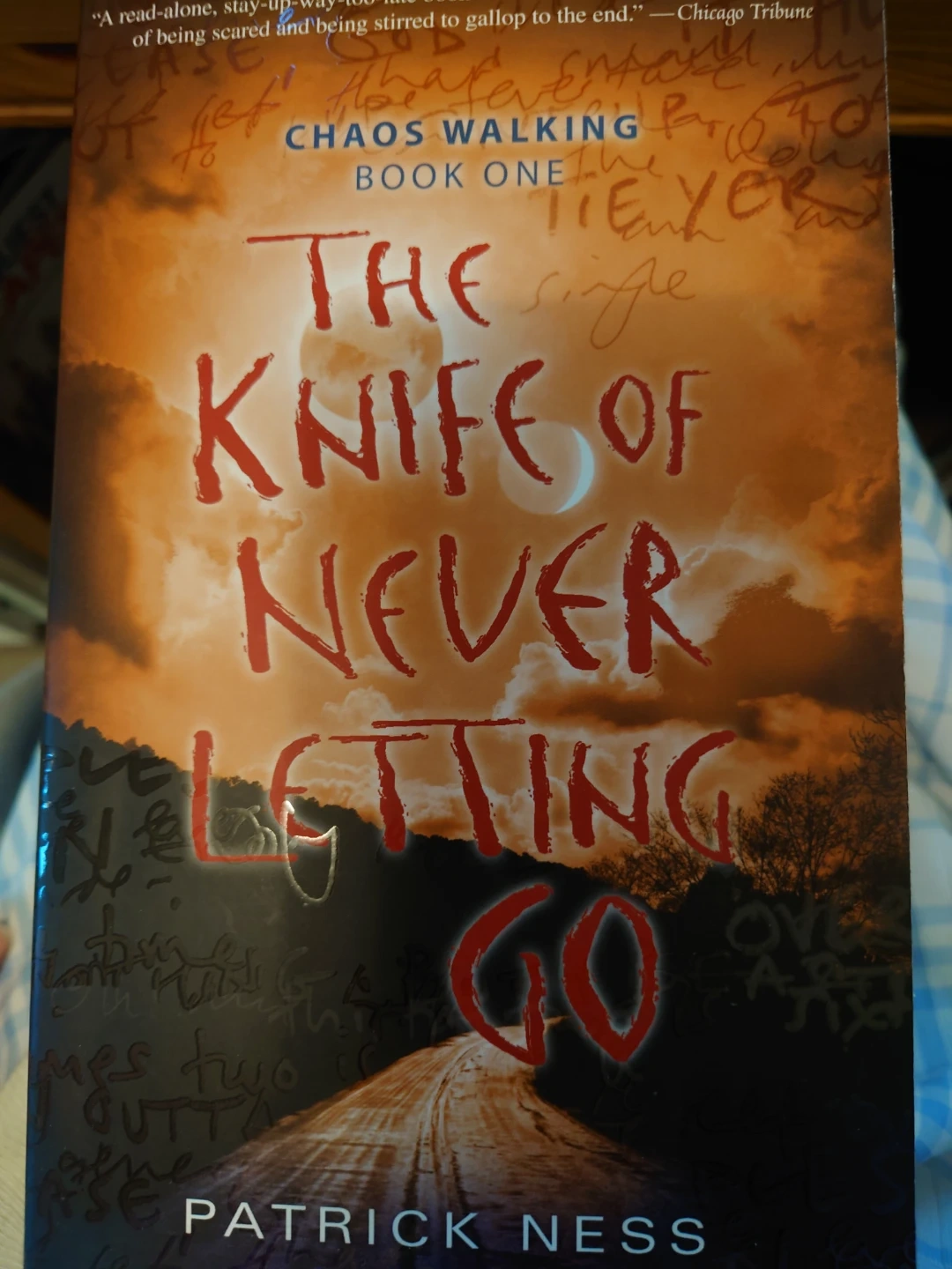 Selling the first book in the Chaos Walking series, "The Knife of Never Letting Go" by Patrick Ness! A thrilling read that will keep you on the edge of your seat