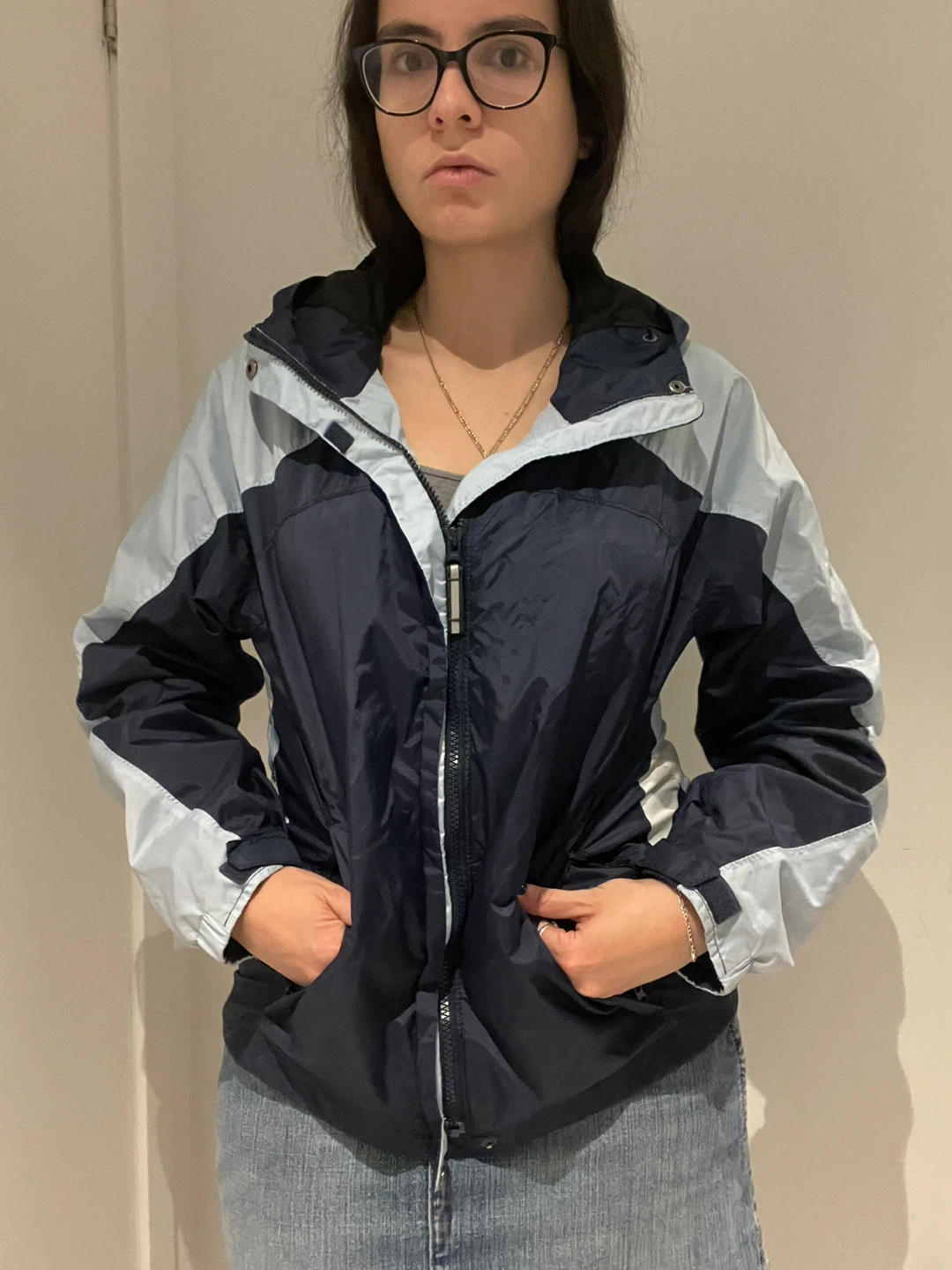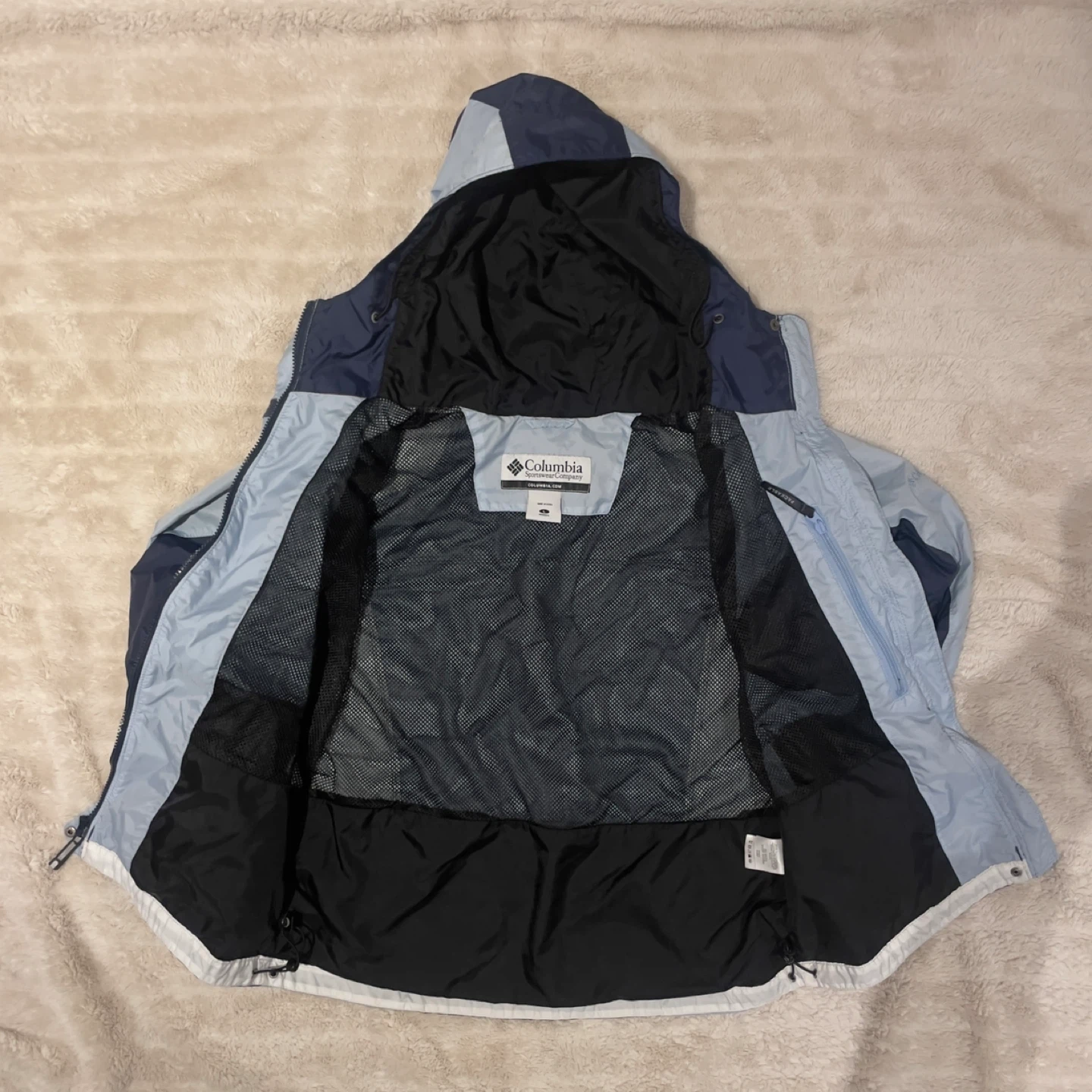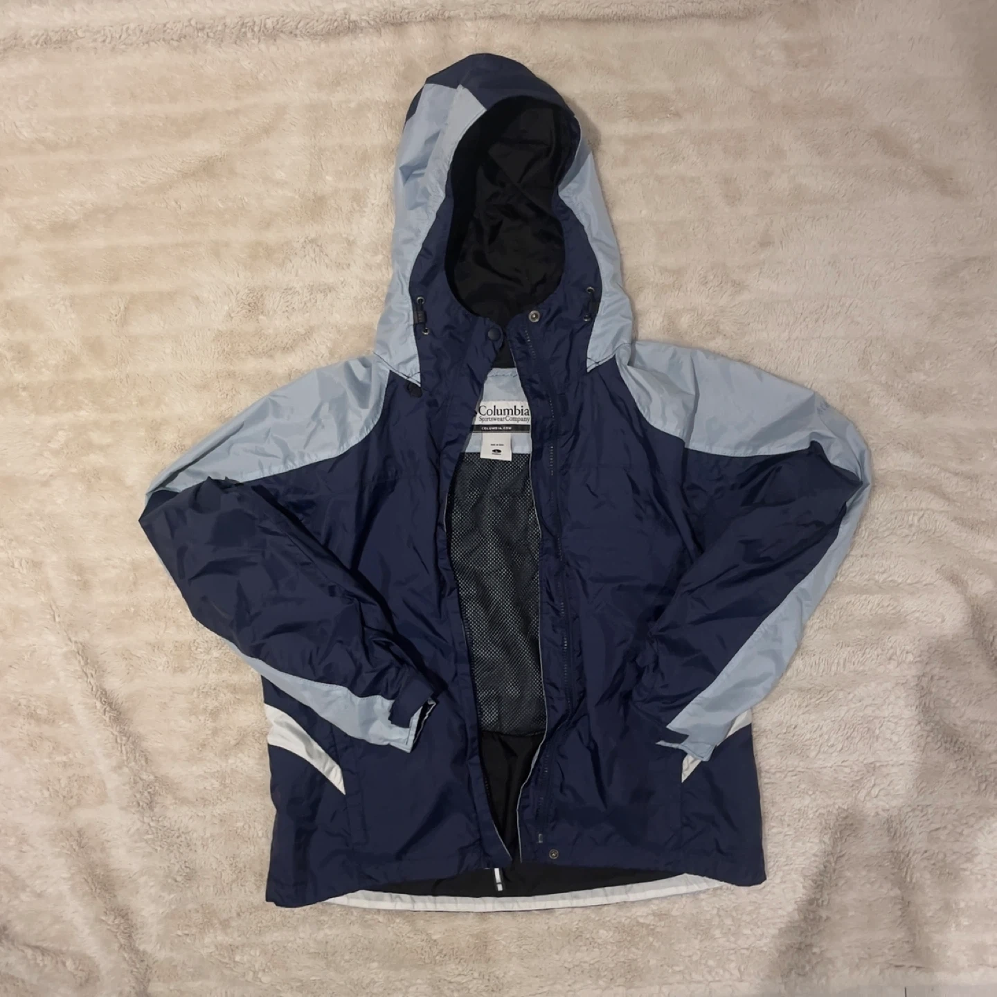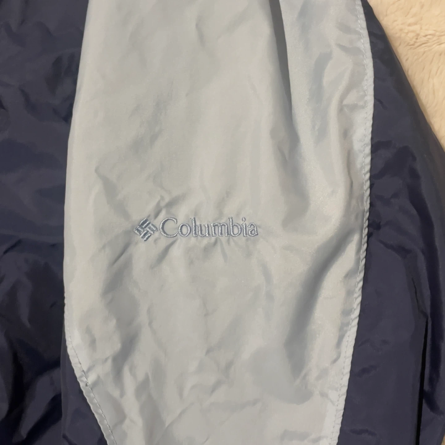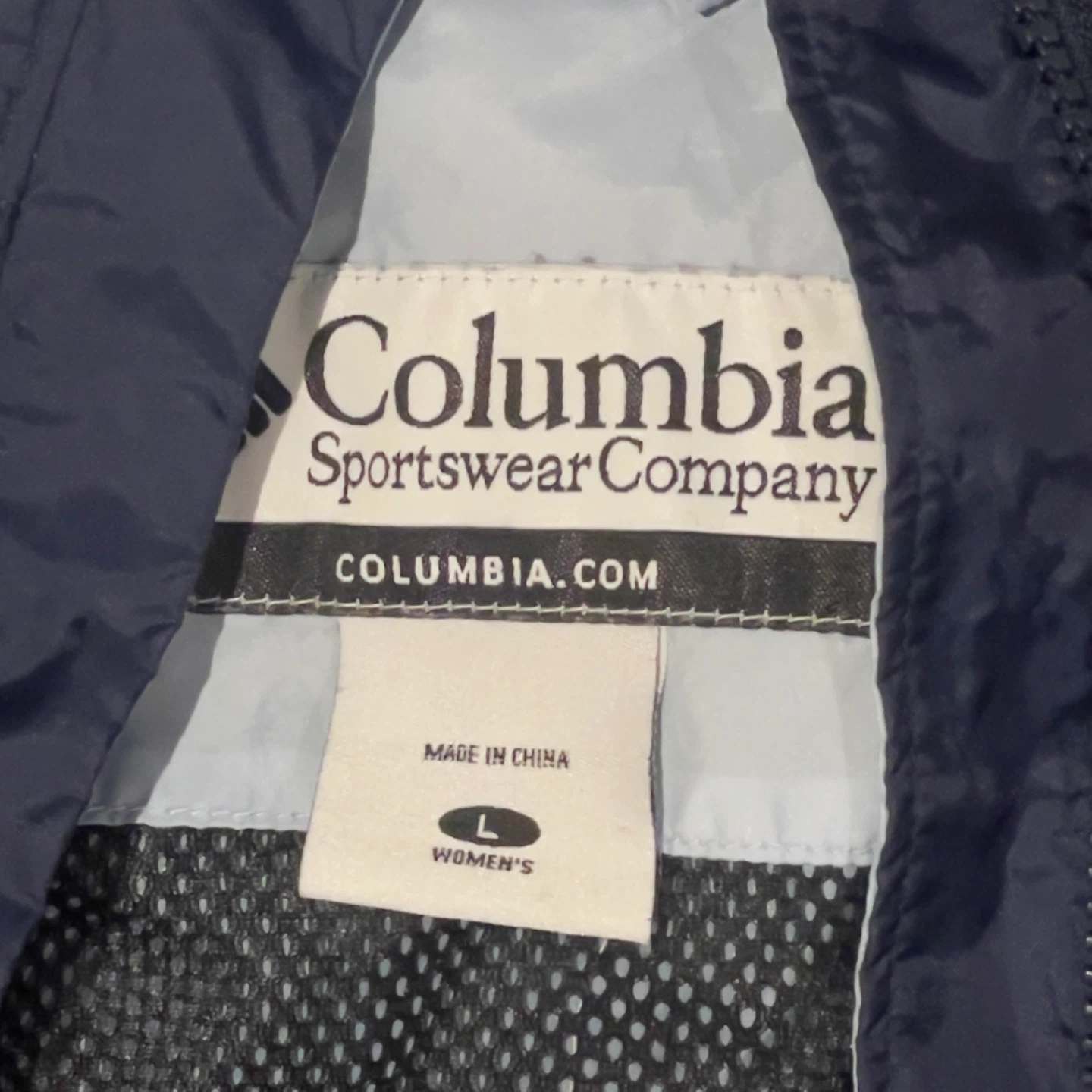 Selling a Y2K Columbia women's jacket. It's a size L and features a stylish two-tone design in navy.
