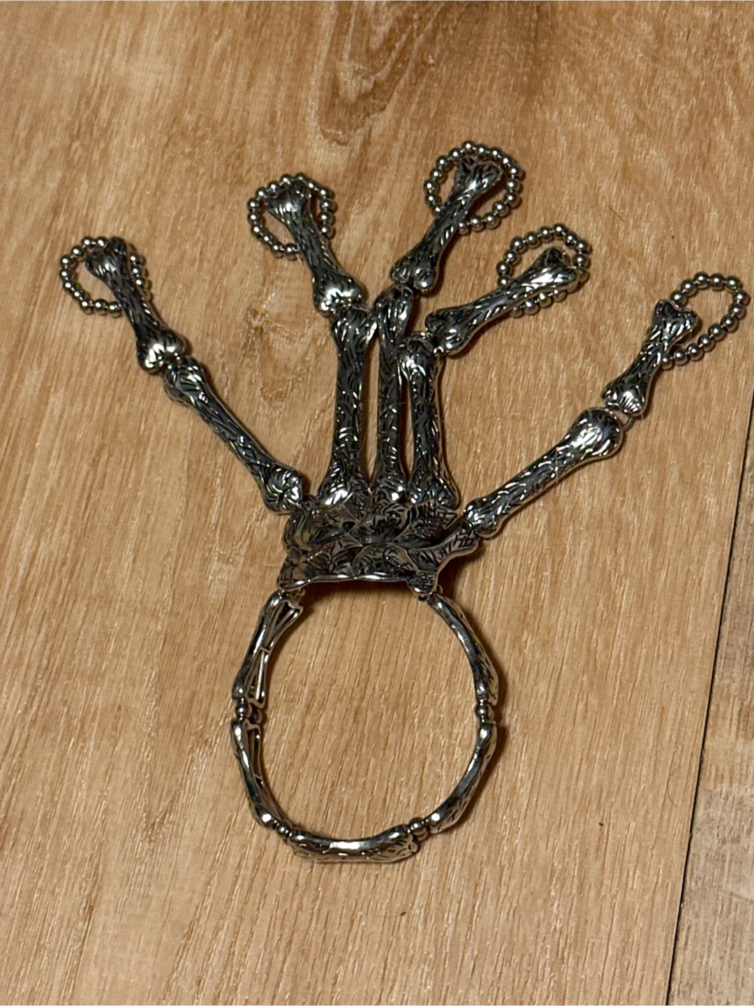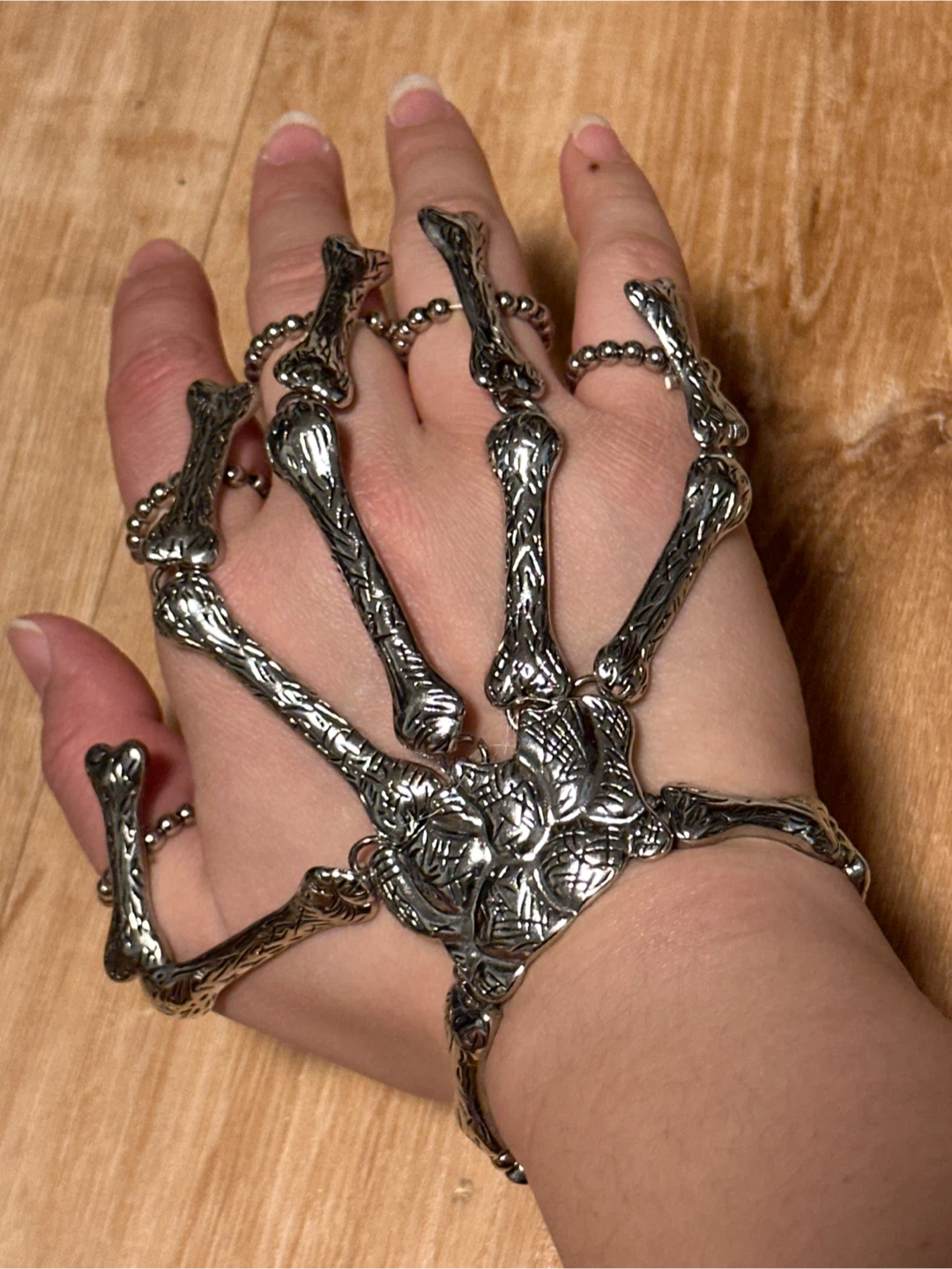 Selling a skeleton hand bracelet. It's a unique piece of jewelry that adds a cool touch to any outfit. The bracelet is in great condition and ready for a new owner!