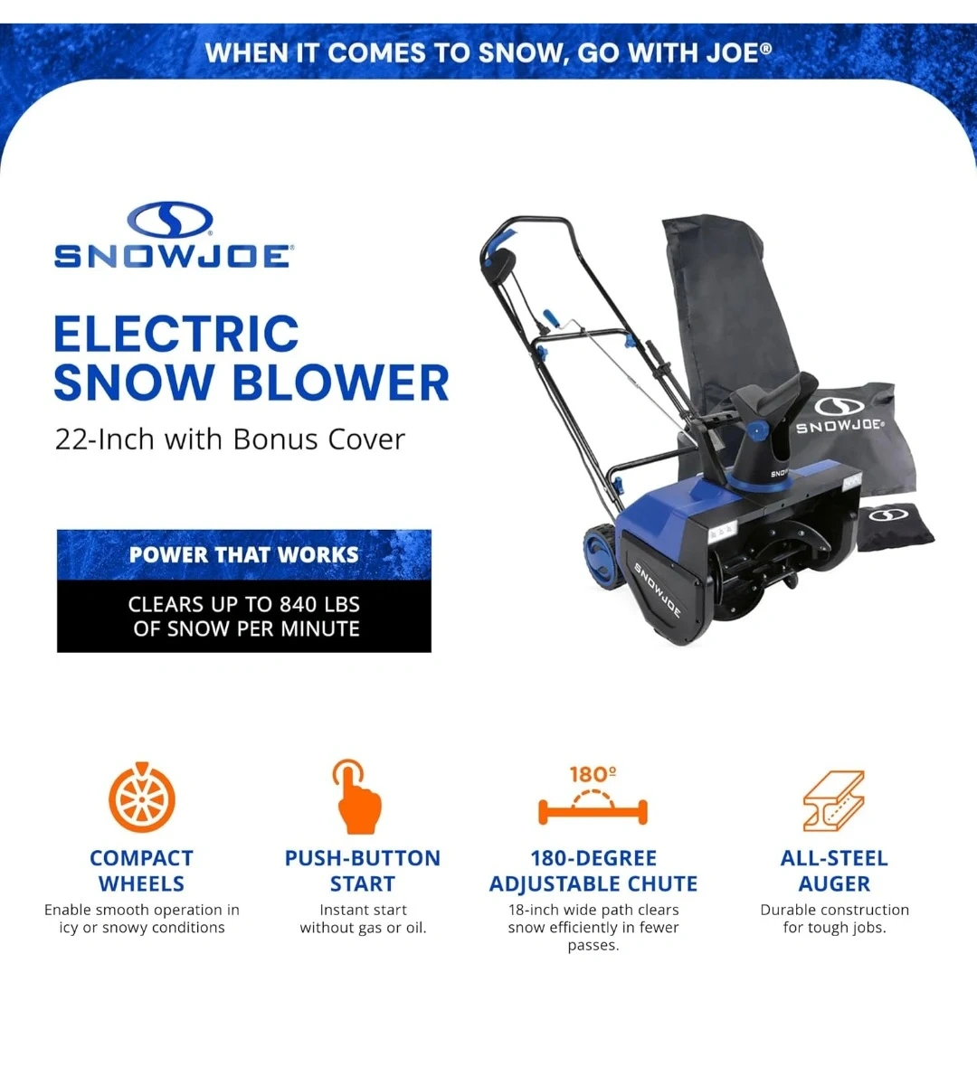 Selling a Snow Joe electric snow blower! It's BRAND NEW never been used and ready to clear some snow. It features a 22-inch wide and 13-inch deep clearing path. The chute is adjustable up to 180 degrees. Get ready for winter!