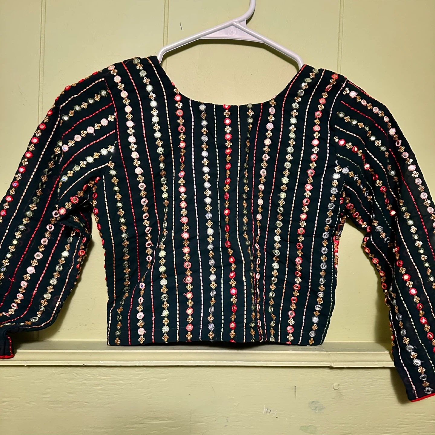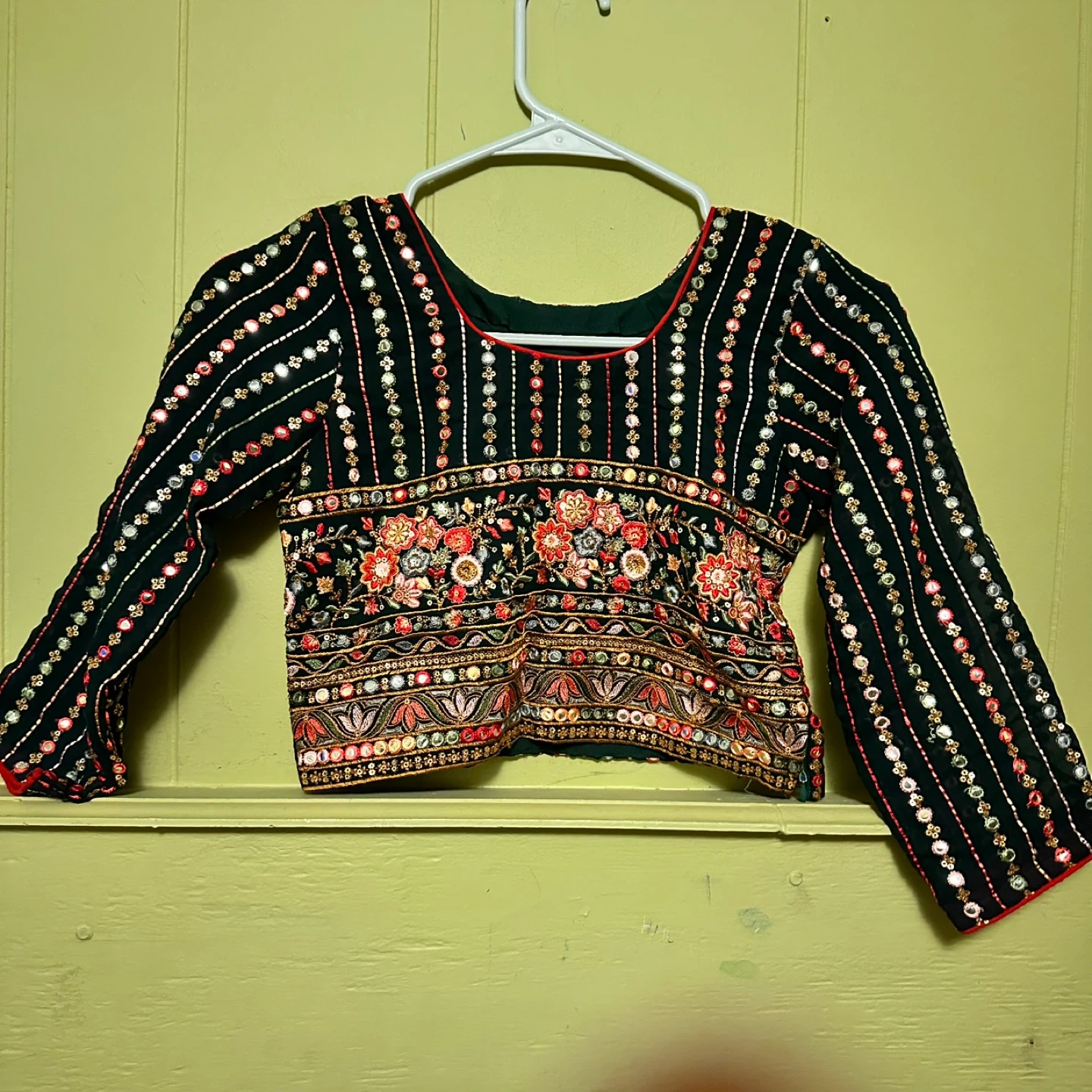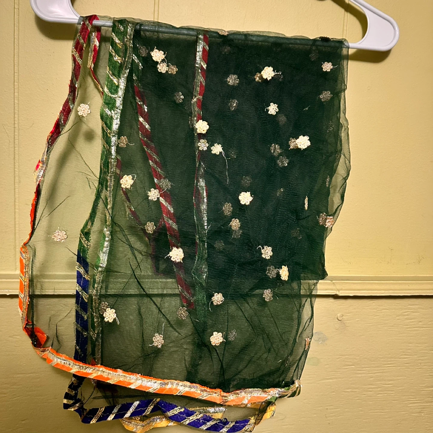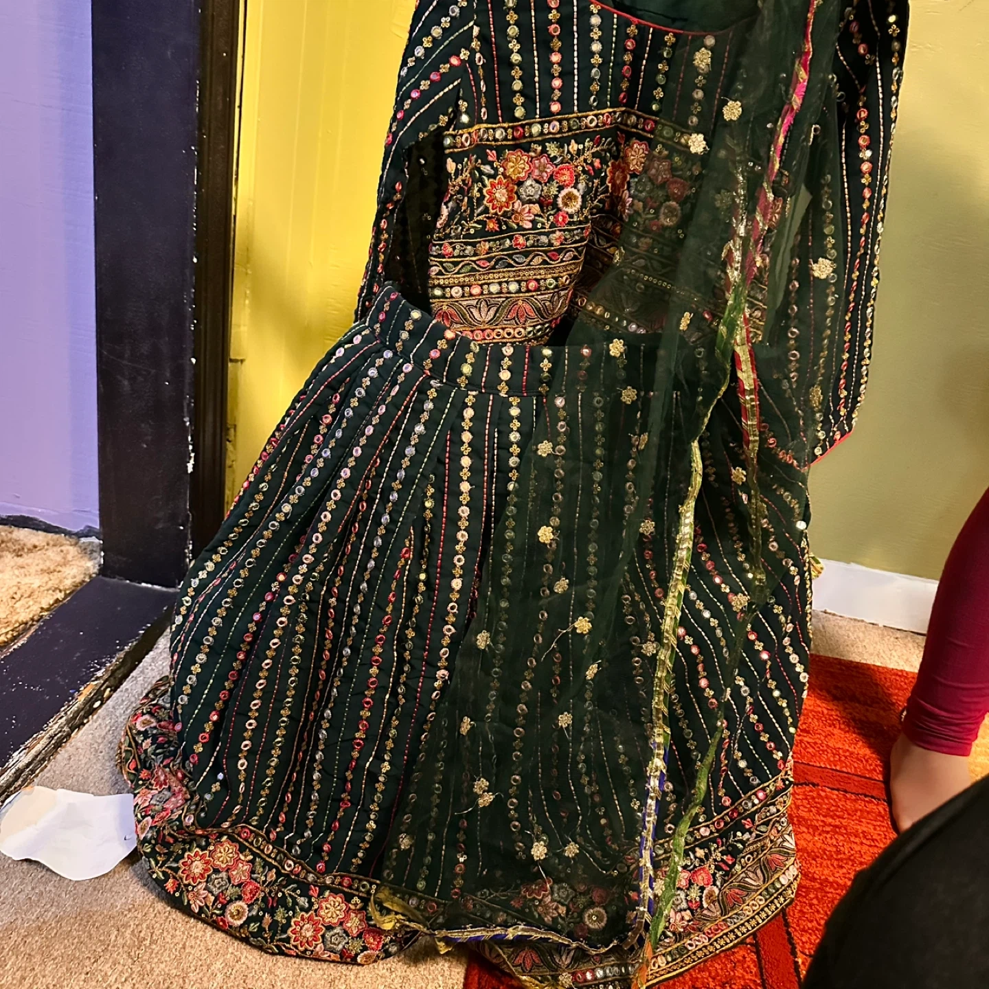 Beautiful dark green lehenga skirt with intricate embroidery and sequin detailing. Perfect for a special occasion! The skirt features a comfortable lining.
