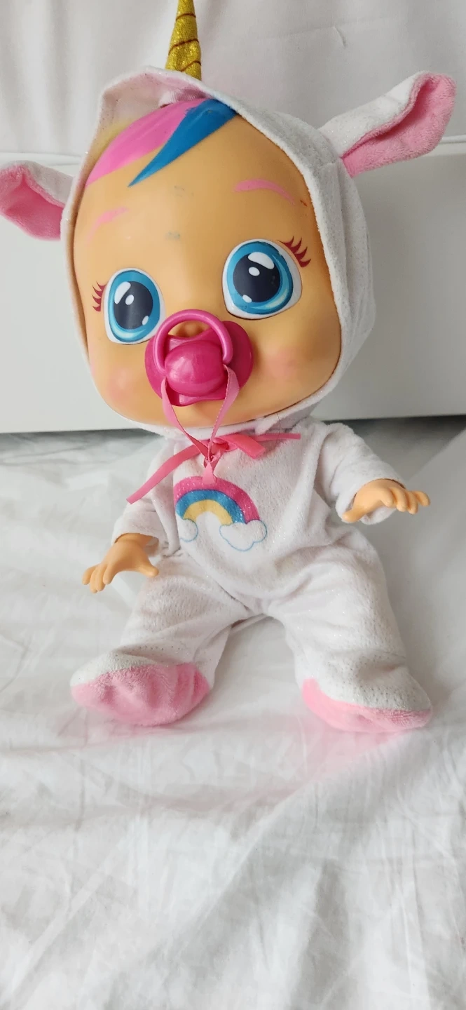 A cute Cry Babies Magic Tears doll dressed as a unicorn! It's in good condition and ready for a new home with someone who will love it, it also crys real tears.