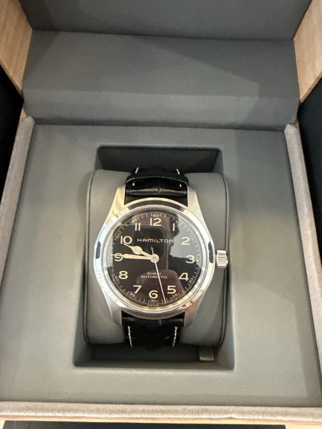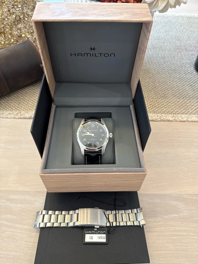 Like New — Purchased as gift 3 months ago (Sept ‘25) and got minimal wear time due to it being too large for my wrist. Includes both straps — metal and black leather Includes Box and receipt (papers) I absolutely love this piece but will be downgrading to the 38mm model to fit my smaller 6inch wrist. If you look closely in the pictures, you can see the lugs overhang my wrist as it’s oversized for me Meetups in Vaughan on weekends/holidays and South Markham/Scarborough during weekdays