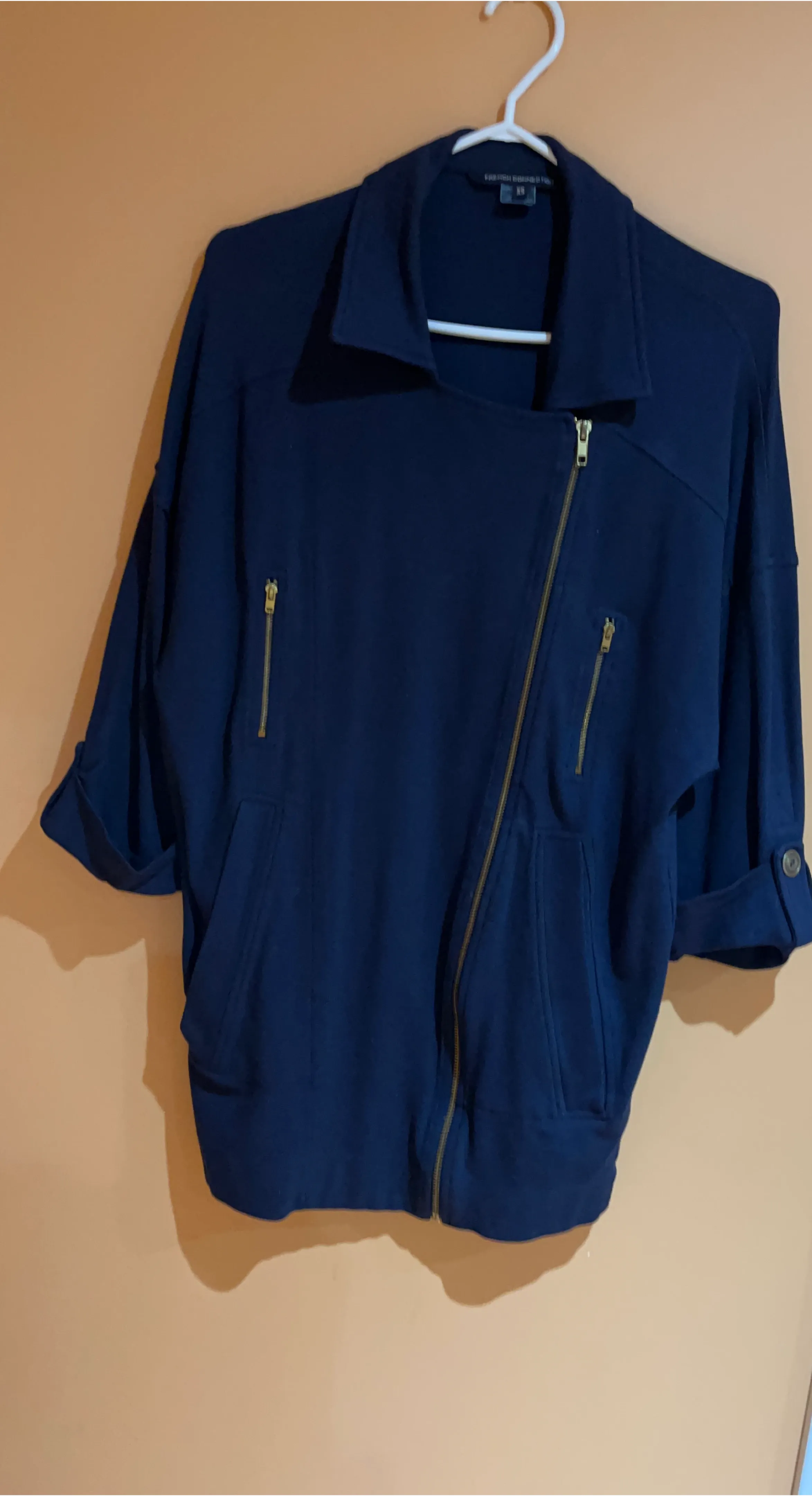 Here's a stylish French Dressing jacket in size XS! It's a lovely blue colour and features an asymmetrical zipper design. Perfect for adding a bit of edge to your outfit
