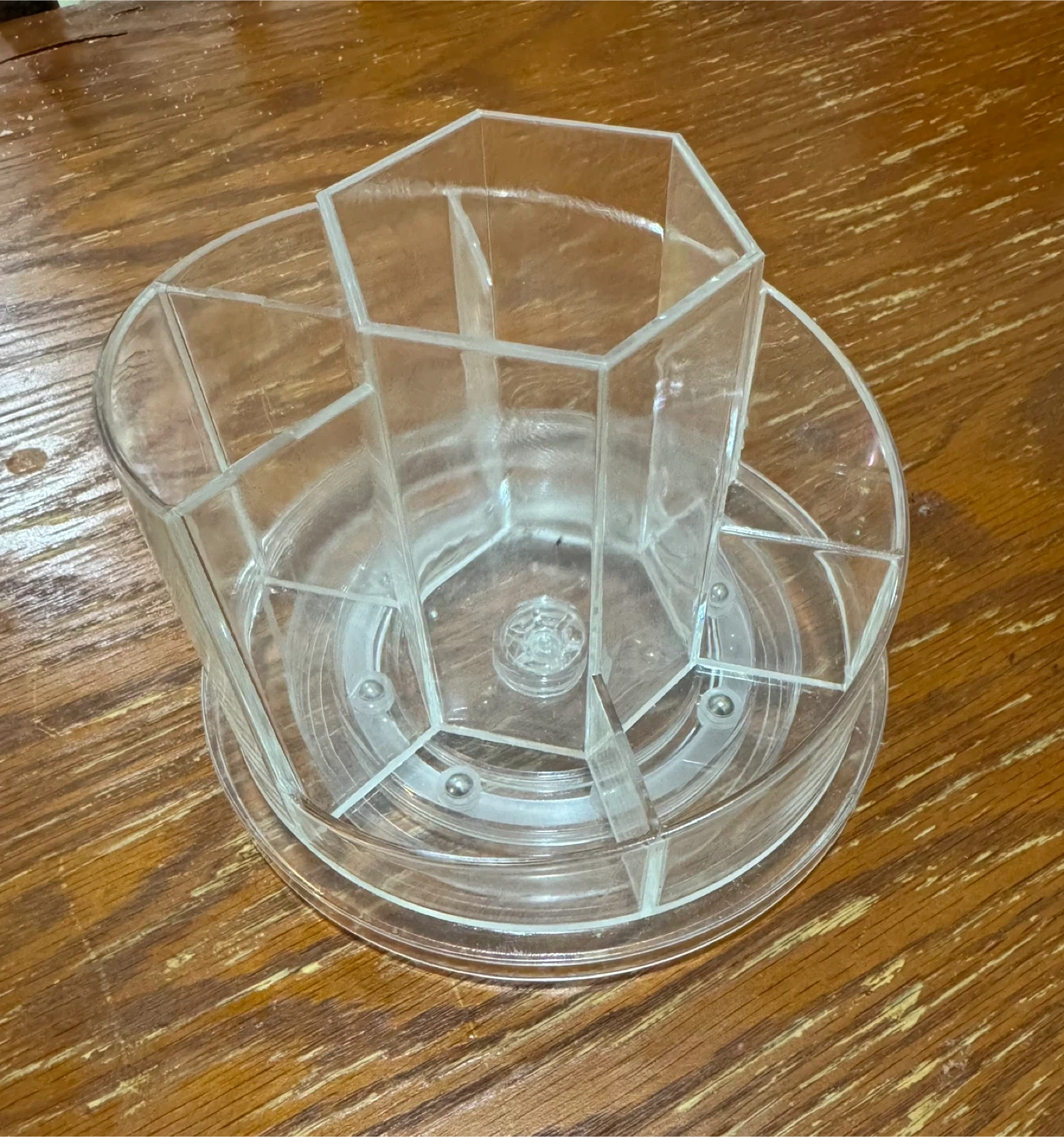 Keep your makeup and accessories organized with this rotating organizer! It's in great condition and perfect for keeping everything tidy on your vanity