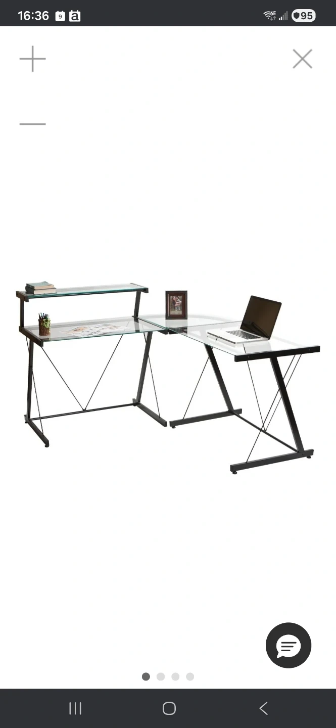 Selling a glass corner desk with a black metal frame. It's in great shape and perfect for a home office or study space. The desk features a sleek, modern design with a glass top and a sturdy black metal frame. Dimensions are 150 cm (59") x 150 cm (59") with a height of 97.8 cm (38.5"). Also in deal is a Black Executive Office Chair. The chair recliner and has a foot rest. It supports 400 lbs and is like brand new. This is a great deal for some one looking to furnish a home office for low price with quality products.
