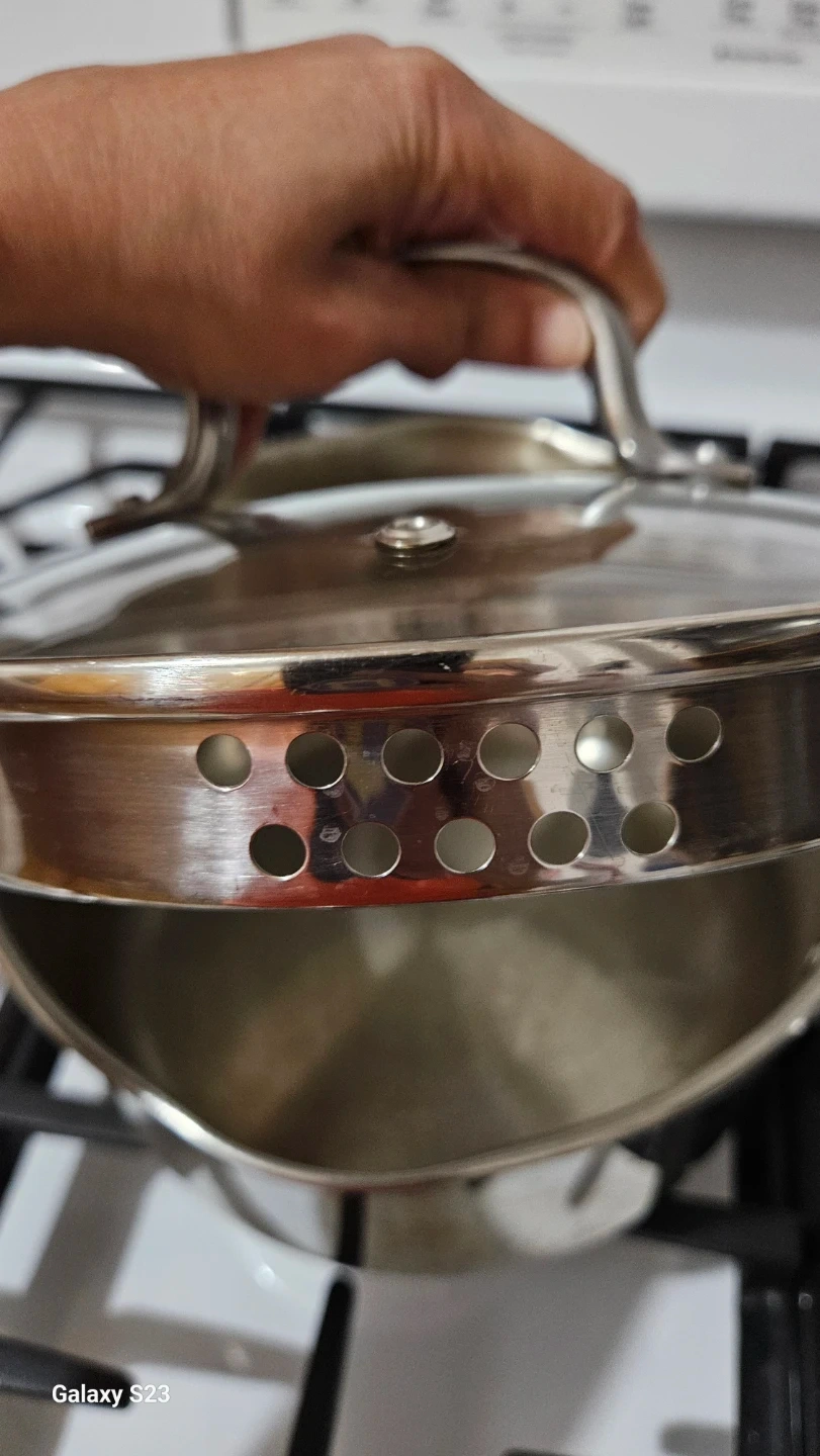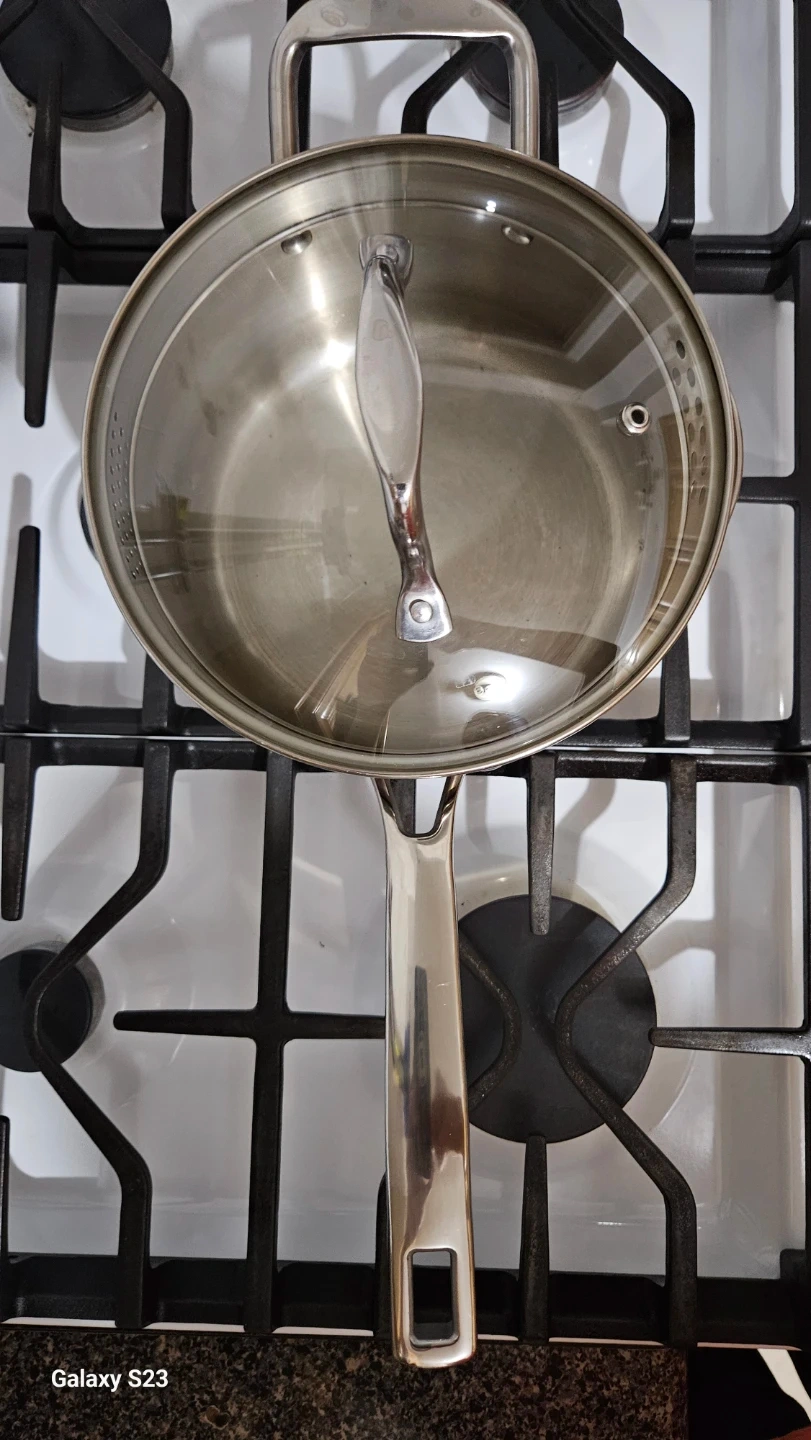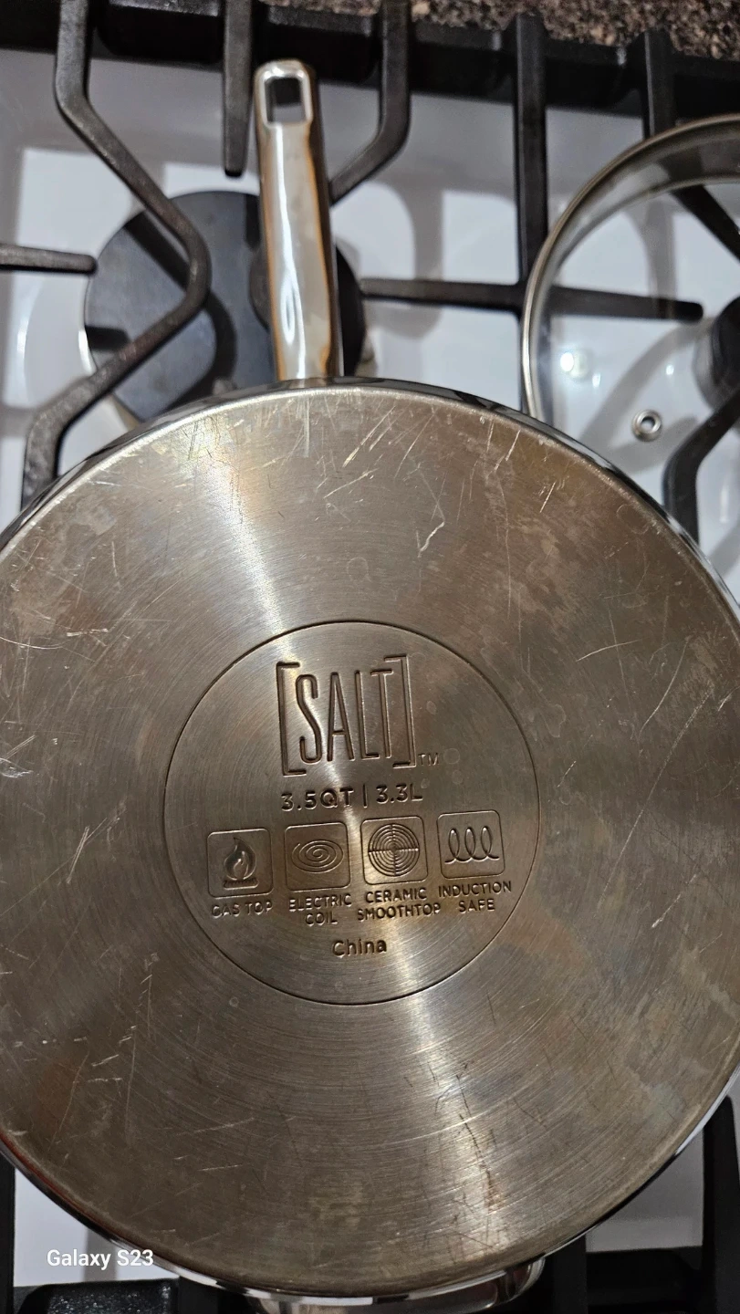 Selling a SALT stainless steel pot with a lid. It's a 3.5 quart pot, perfect for cooking a variety of meals. It's suitable for gas, electric, and ceramic cooktops. It also has an induction-safe bottom.