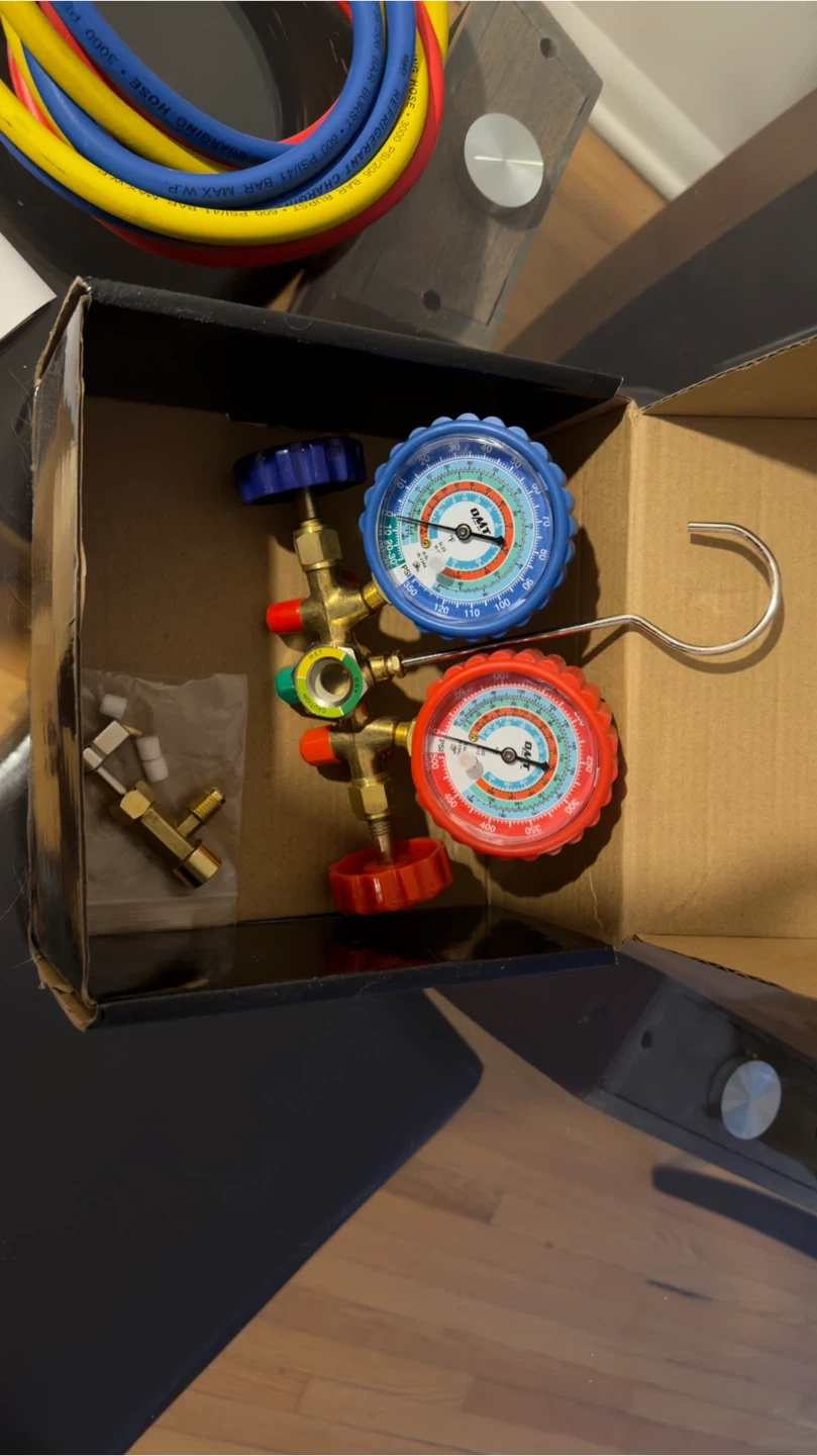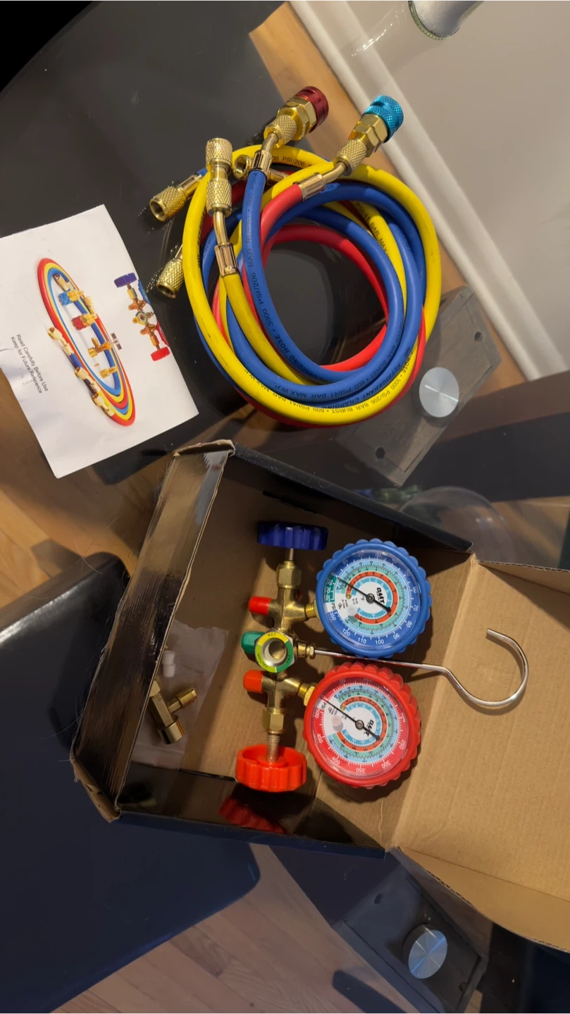 Selling a brand new OMT AC gauge set for car AC systems! It fits R134A, R12, R22, R502 refrigerants. Comes with the original box!
