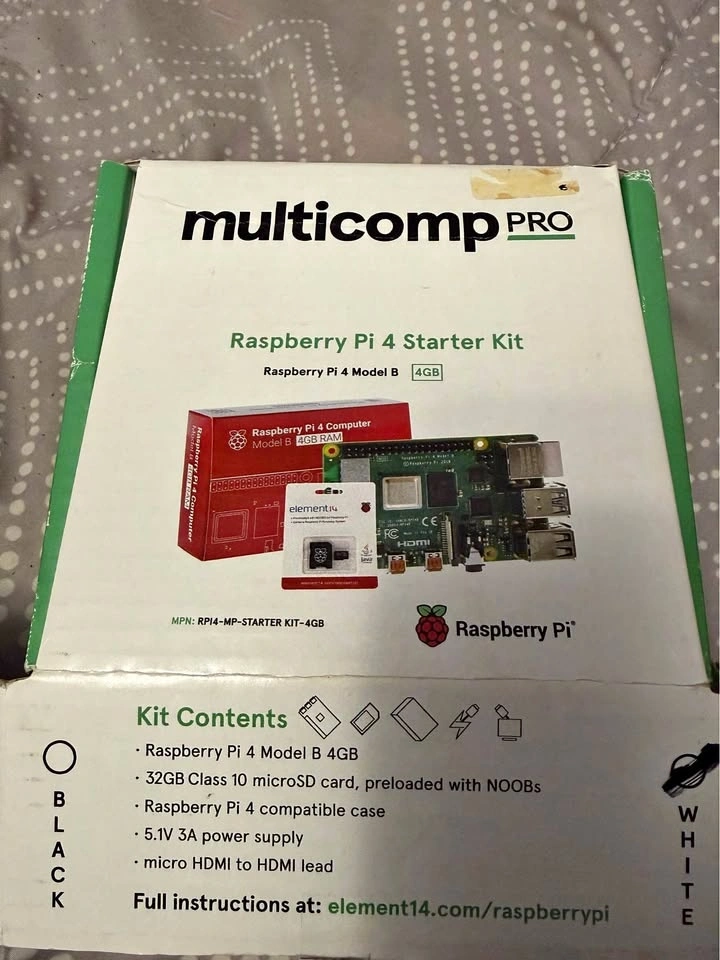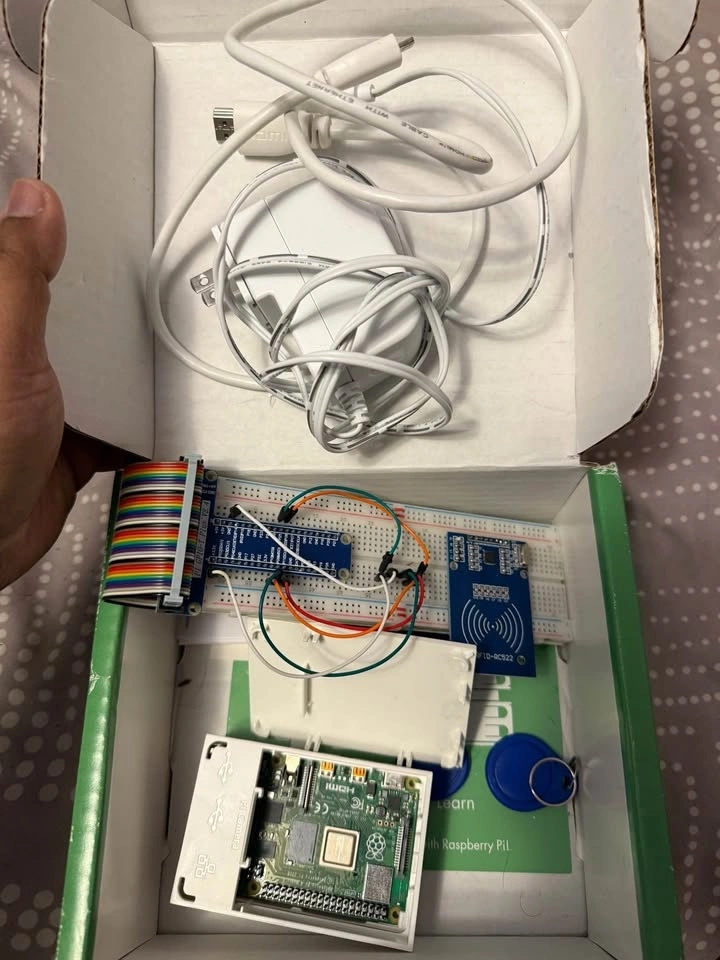 Selling my Raspberry Pi 4 I used in college. Comes with the 32 GB SD card loaded with NOOBs, power cable, HDMI cable, breadboard, GPIO-T attachment, and RFID tags and receiver.
