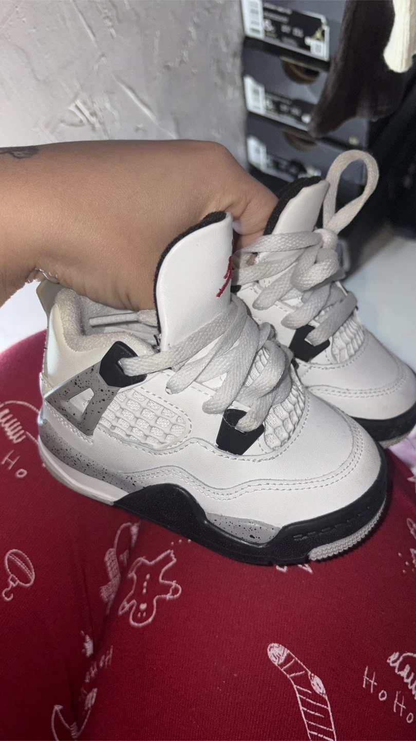 Selling a pair of toddler-sized Air Jordan 4 Retro sneakers! These are perfect for your little one who wants to step out in style. They feature the classic design and iconic look of the original Air Jordan 4s, scaled down for tiny feet