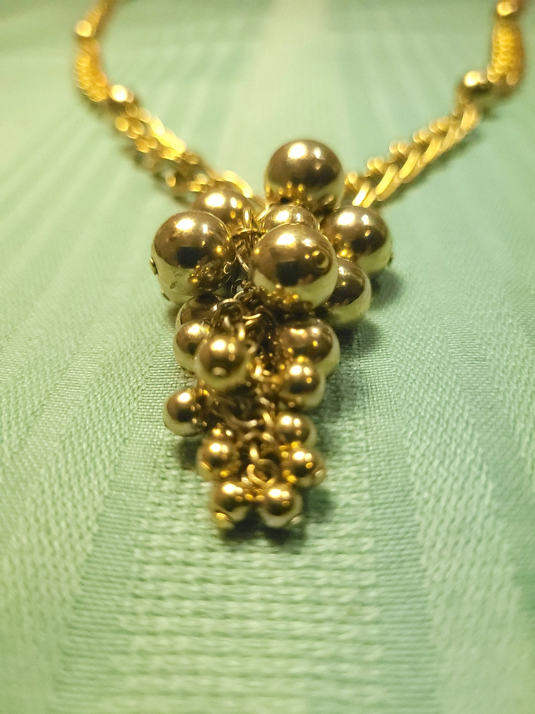 1971 Gold Tone Grape Cluster Pendant Necklace 32" Rope Chain