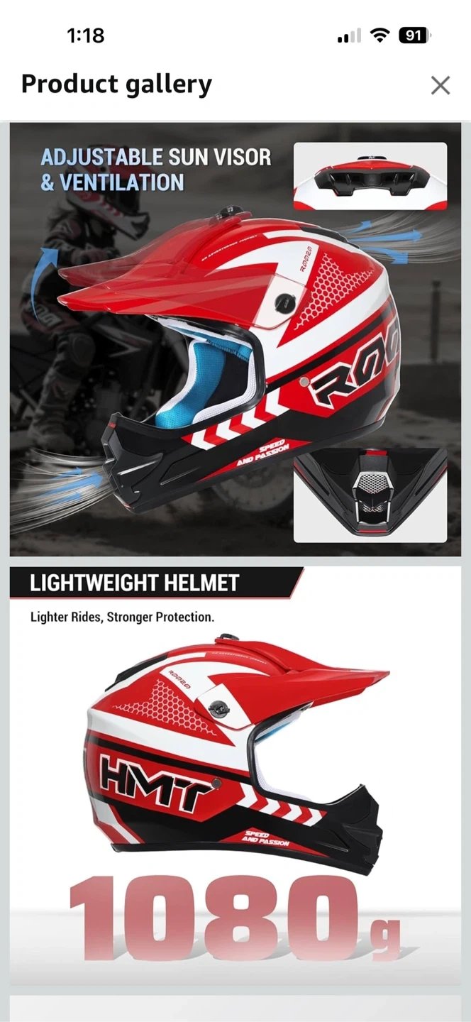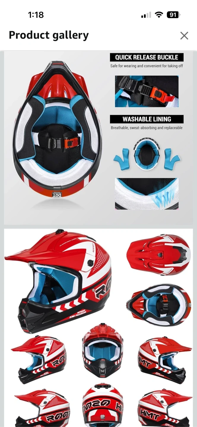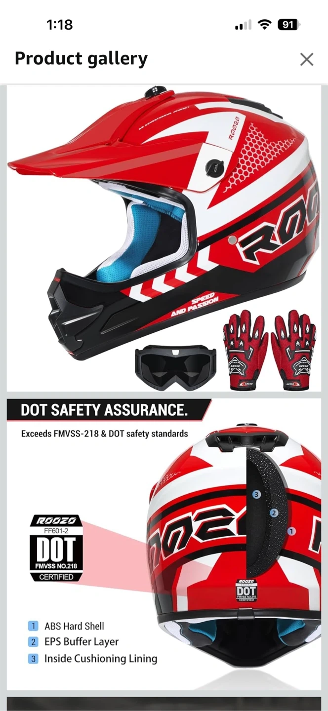 Selling a ROCO motocross helmet in red and white. It's DOT safety certified and features: