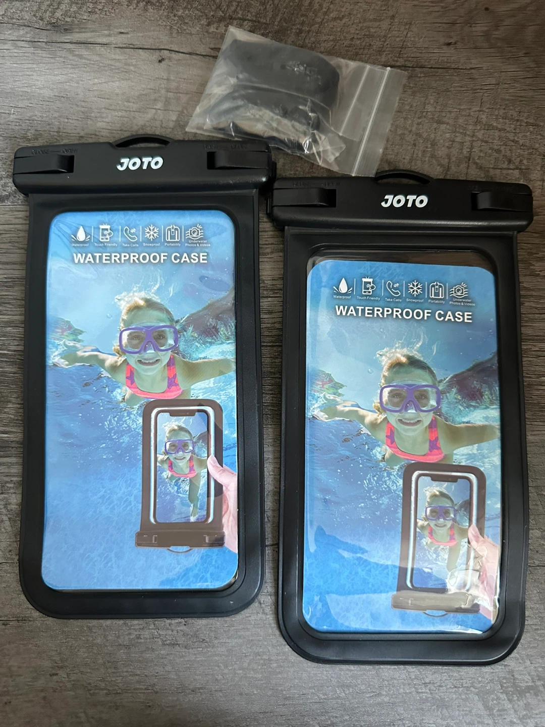 Selling a pair of JOTO waterproof phone cases! They're great for protecting your phone at the beach, pool, or anywhere you might get splashed. The cases are designed to keep your phone safe from water damage while still allowing you to use the touchscreen. Comes with a lanyard for easy carrying