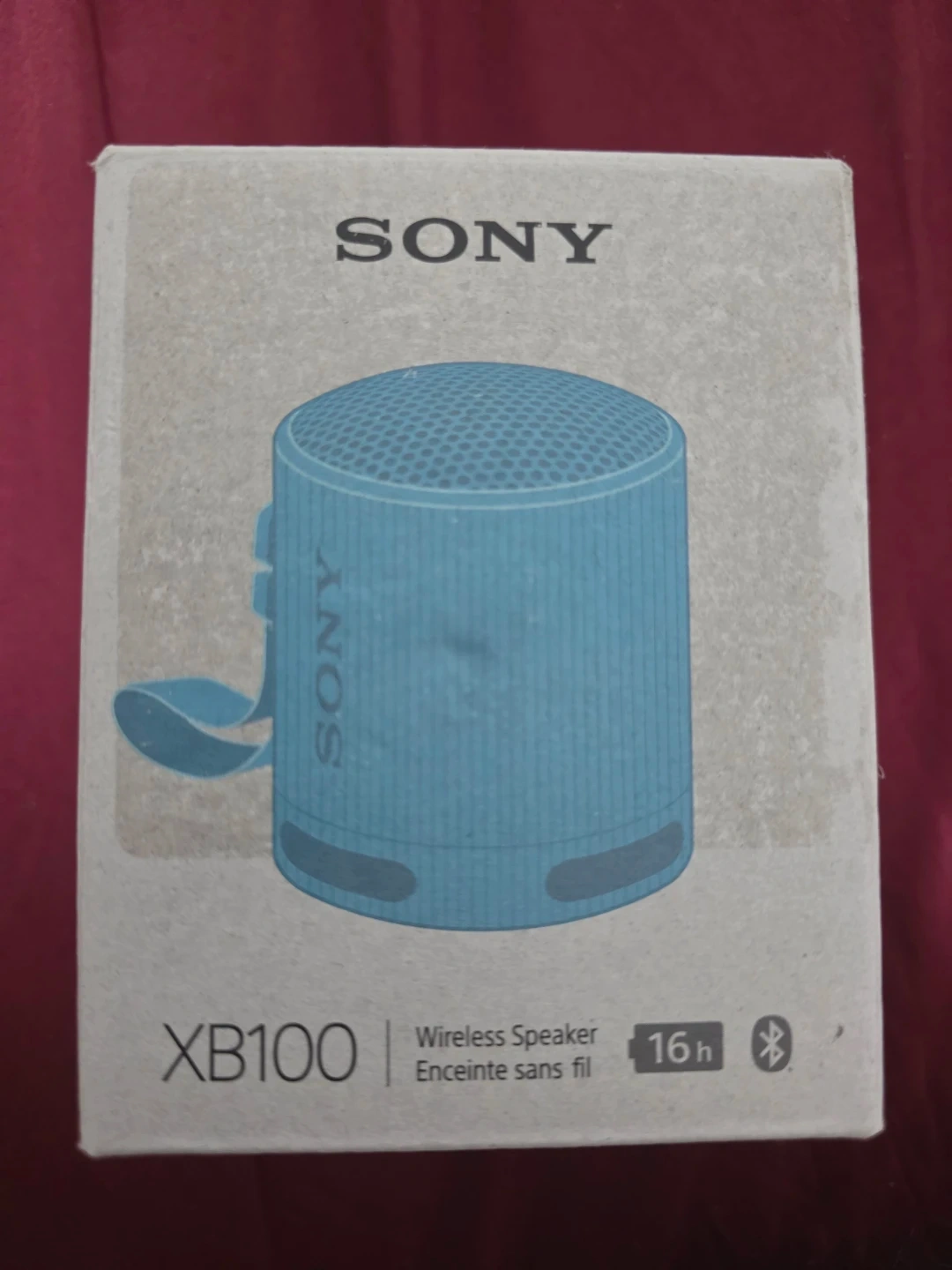 Selling a brand new Sony XB100 Wireless Speaker! It boasts 16 hours of battery life and comes in its original box but box has bit of damage.