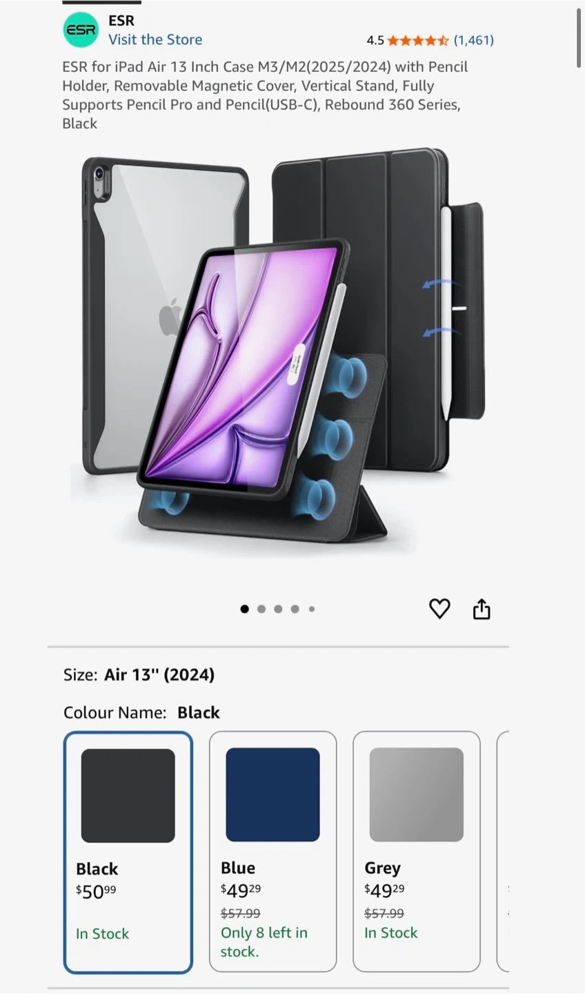 This ESR Rebound Hybrid Case 360 for iPad. It features a detachable magnetic cover and multi-angle adjustments for more ways to use your iPad. It also has a pencil holder stand
