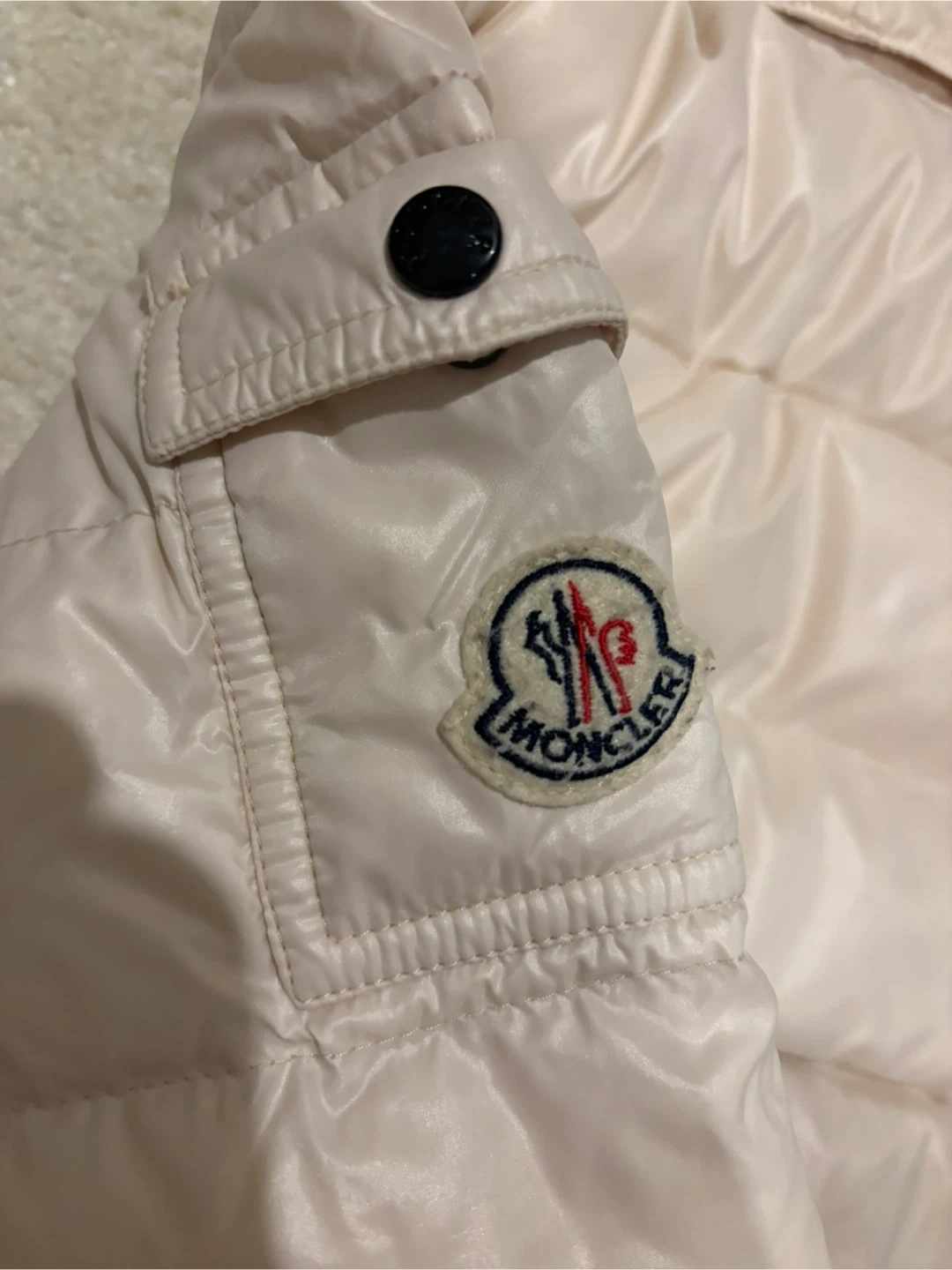 Selling a Moncler kids' down puffer jacket -Bady in a light pink color. Perfect for keeping your little one warm and stylish during the colder months!