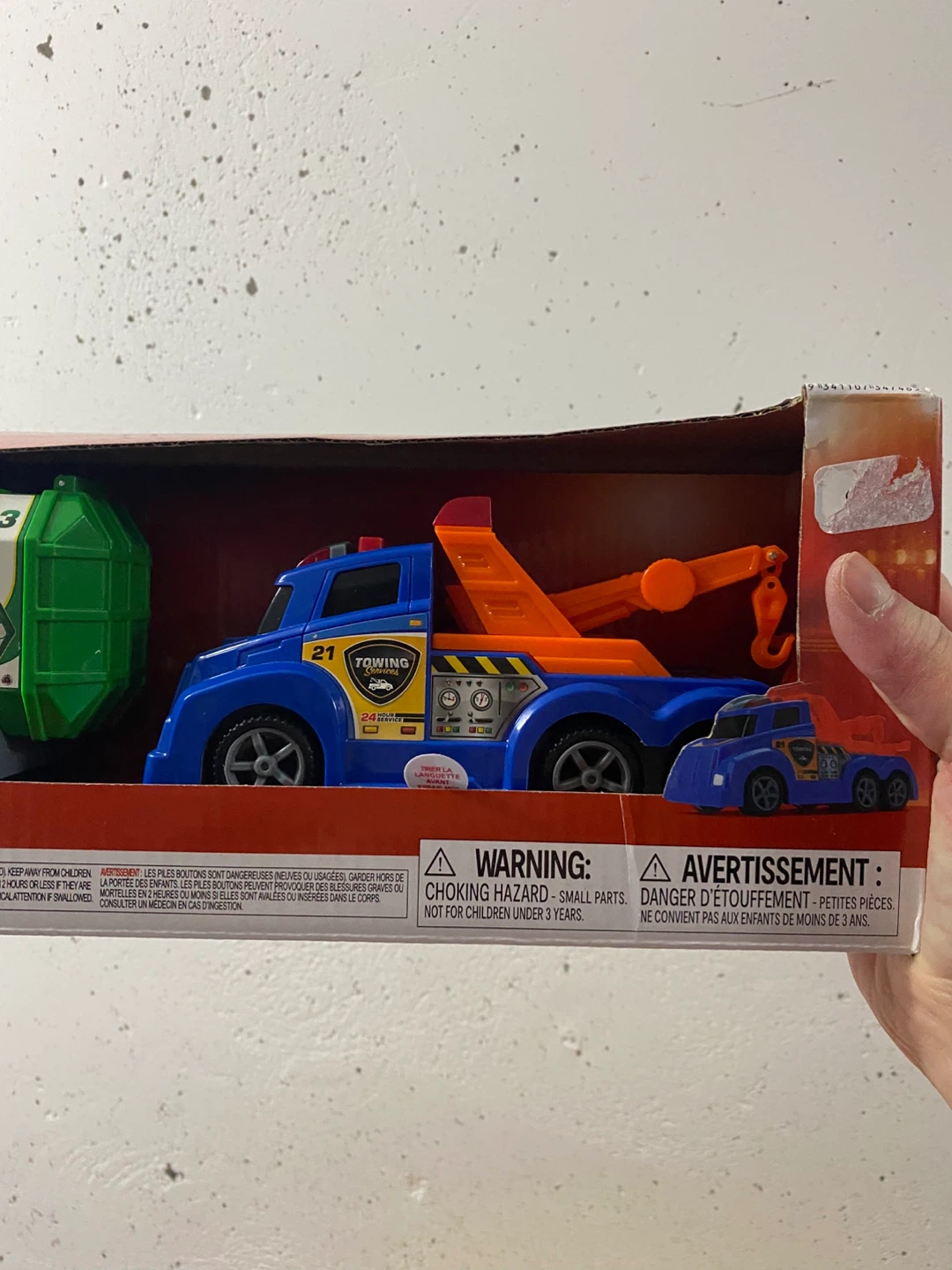 Selling a brand new Anko Lights & Sounds Vehicles 3 Pack, still in its original packaging! This set includes a fire truck, a recycle truck, and a tow truck, all with fun lights and sounds. Perfect for kids who love vehicles!