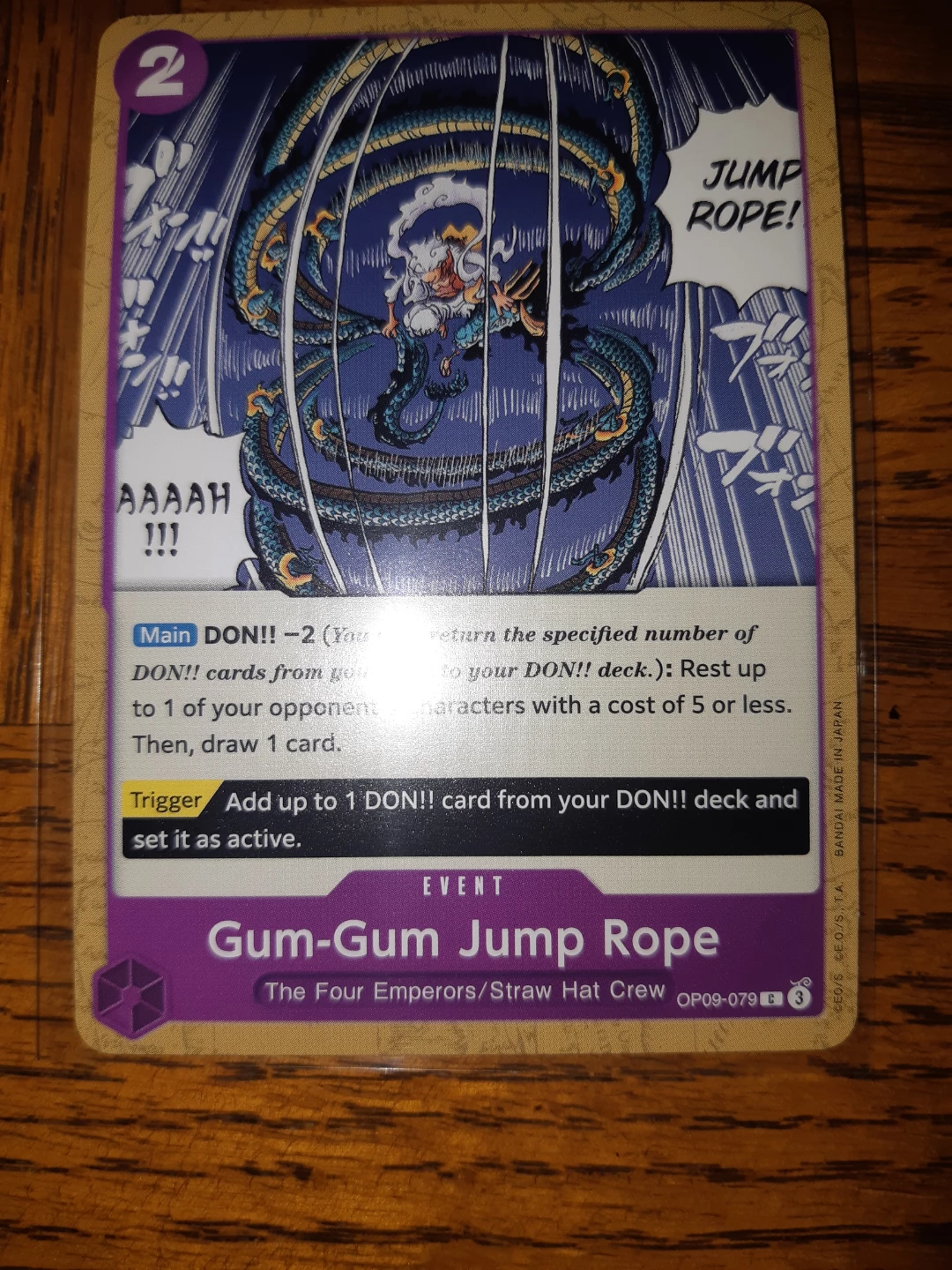 Selling a One Piece card game card, Gum-Gum Jump Rope OP09-079. It's in great condition and ready for a new collection!