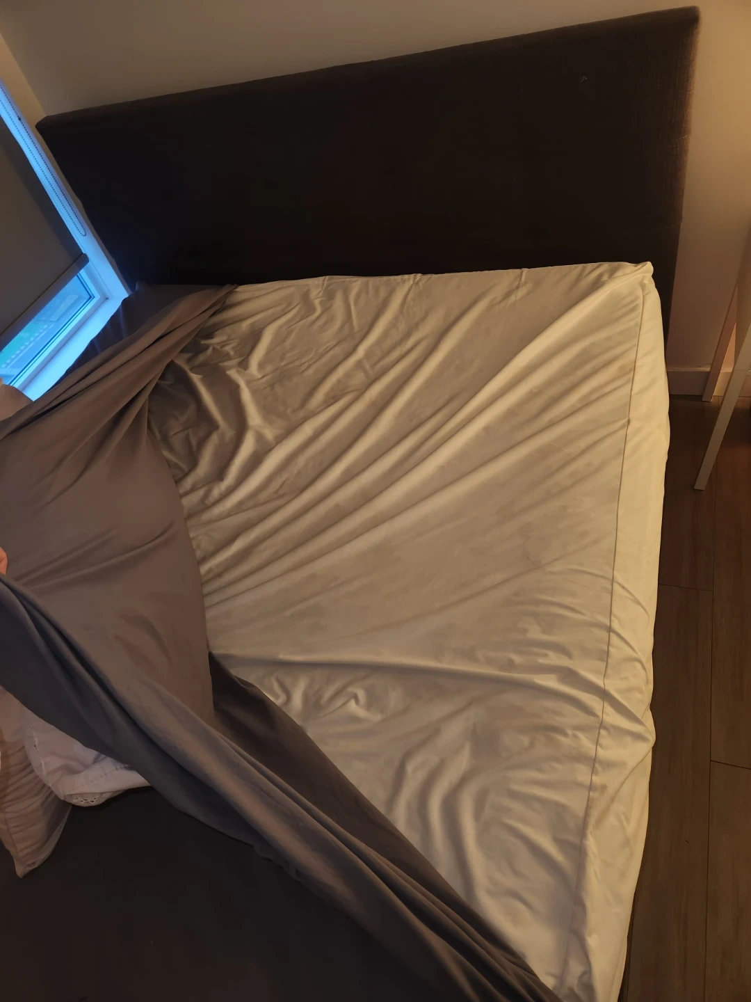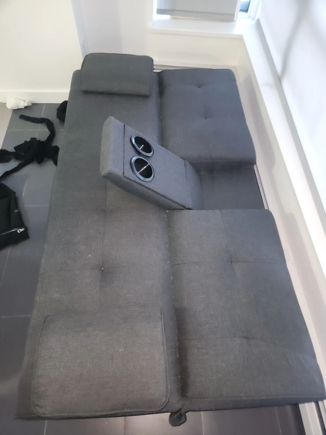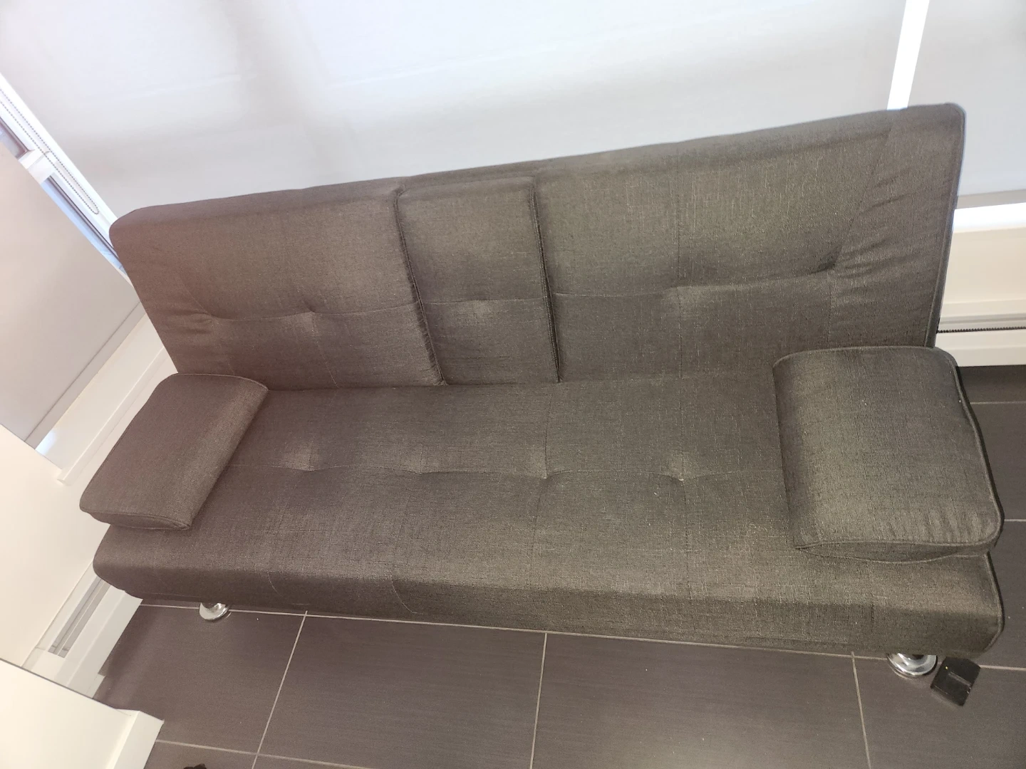 $100-grey futon perfect condition, not super comfy, but does the job