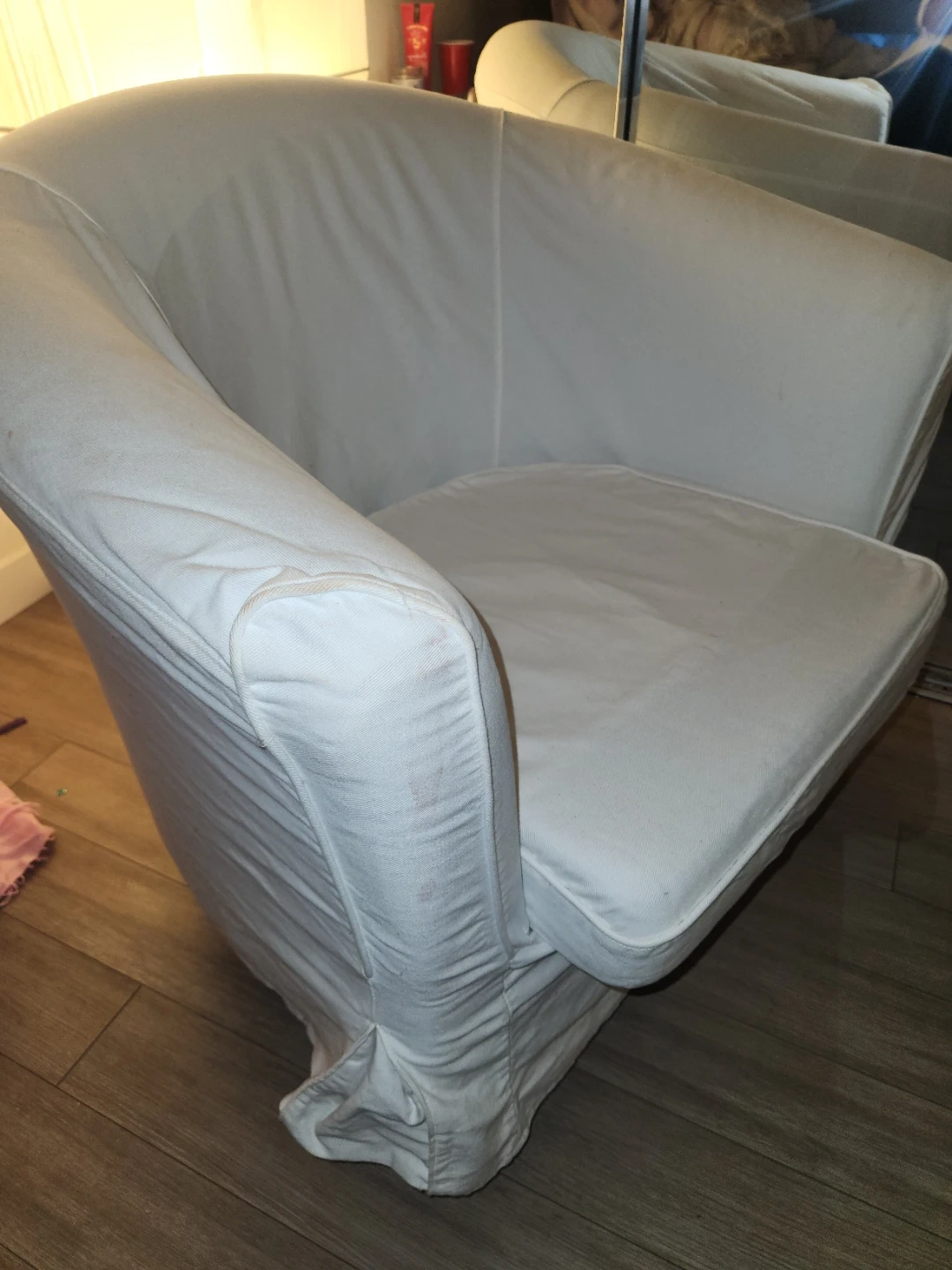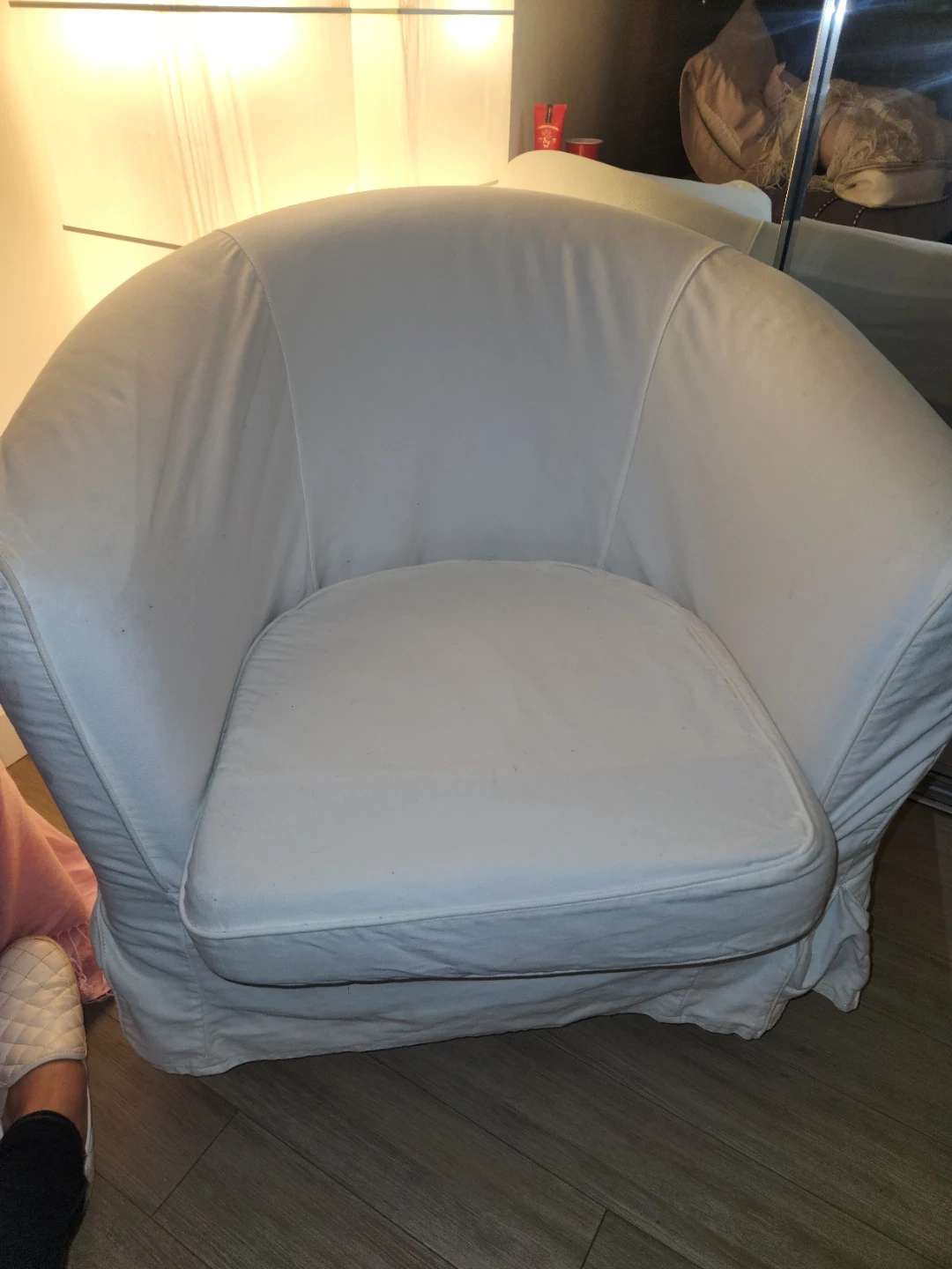 $75- white arm chair - pick up is 2nd and qubec street, must be gone by Monday 5 pm. Pick up only