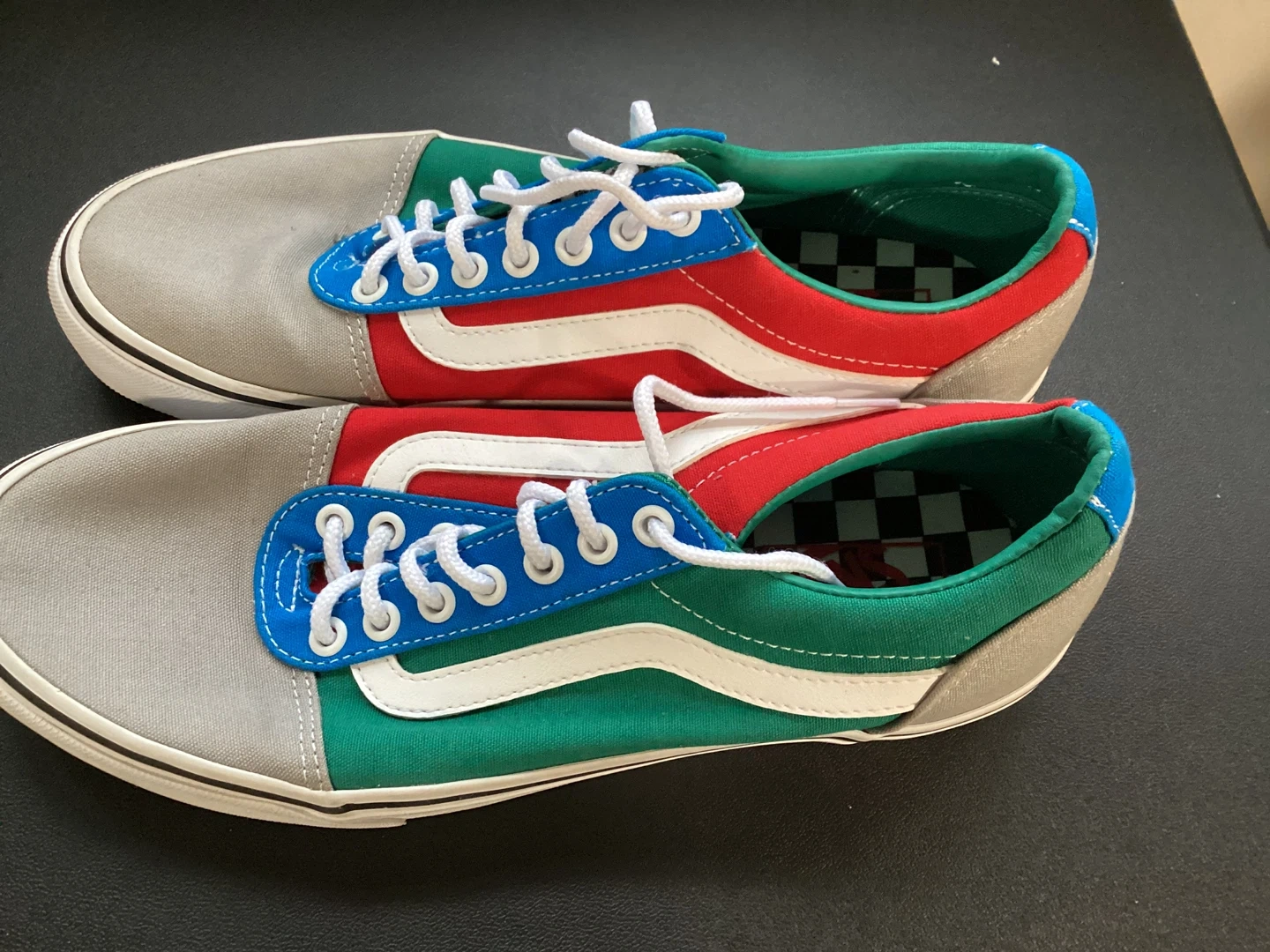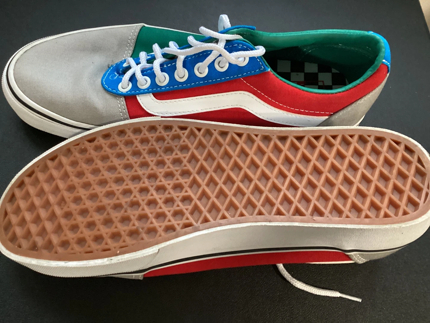 Selling a pair of Vans skate shoes with a cool color block design! They're in great shape and ready for a new owner. These have a unique style that will definitely stand out. Perfect for skating or just casual wear