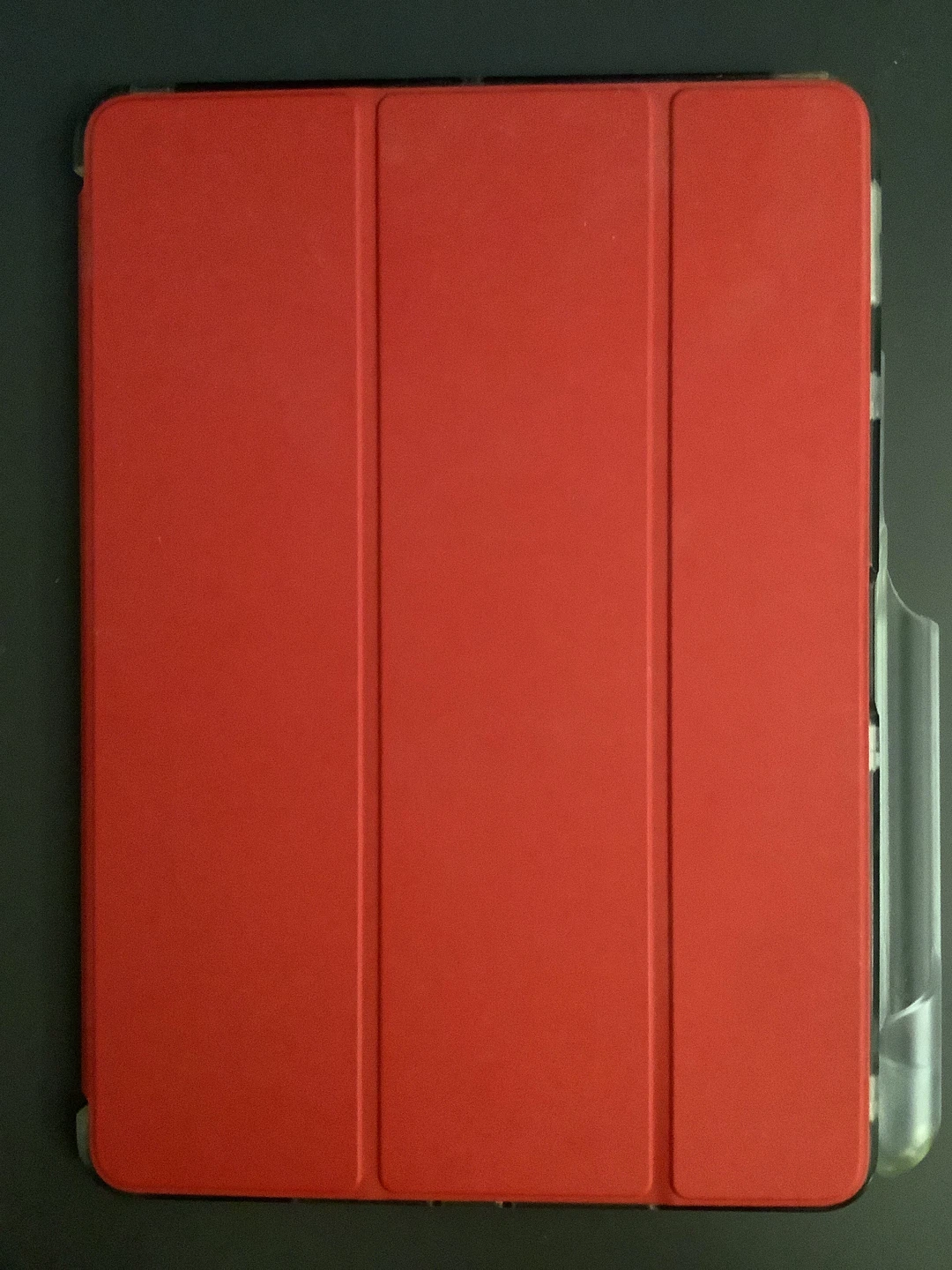 iPad Gen 6, comes with a case, cover, and screen protector. The case can hold an Apple Pencil (not included).