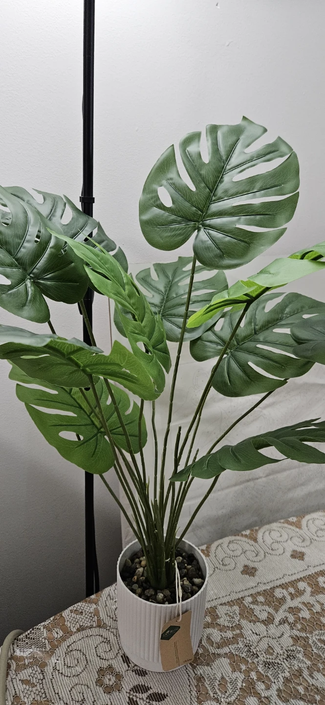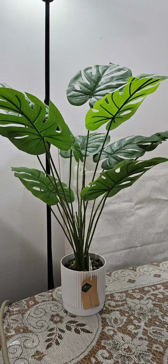 Add a touch of greenery to your space with this artificial Monstera plant! It comes in a stylish white pot and looks great as a decorative piece