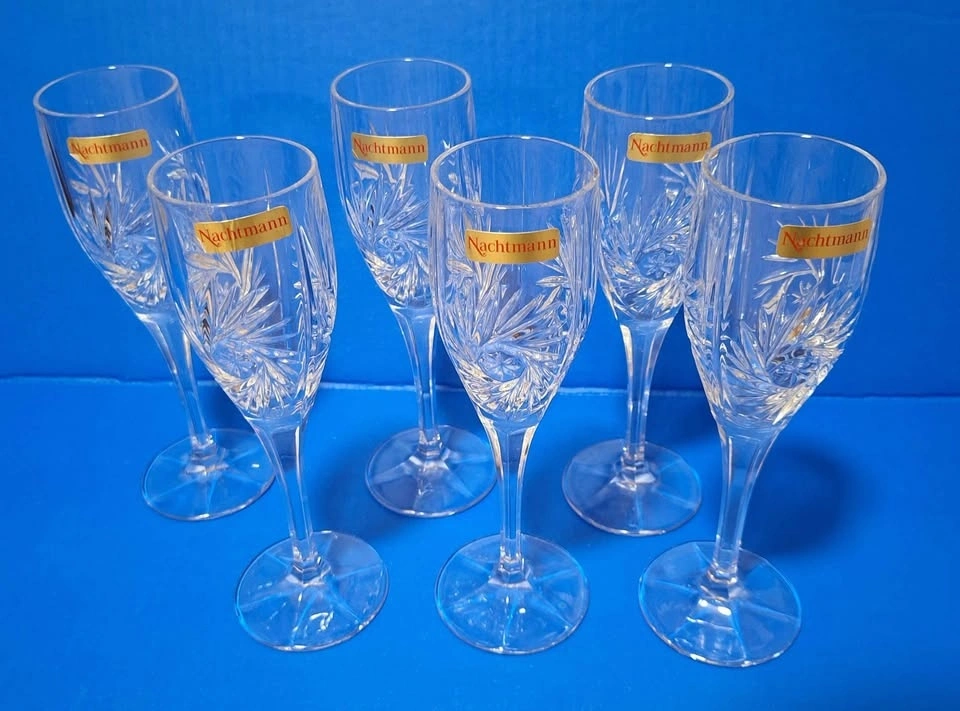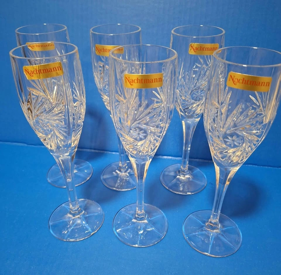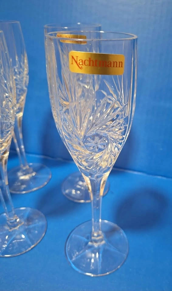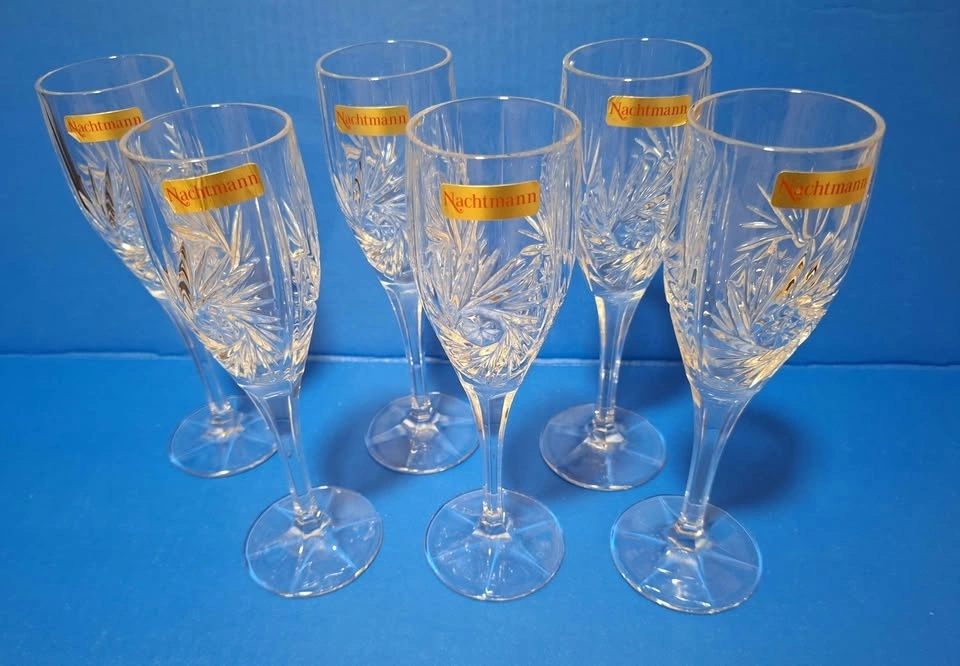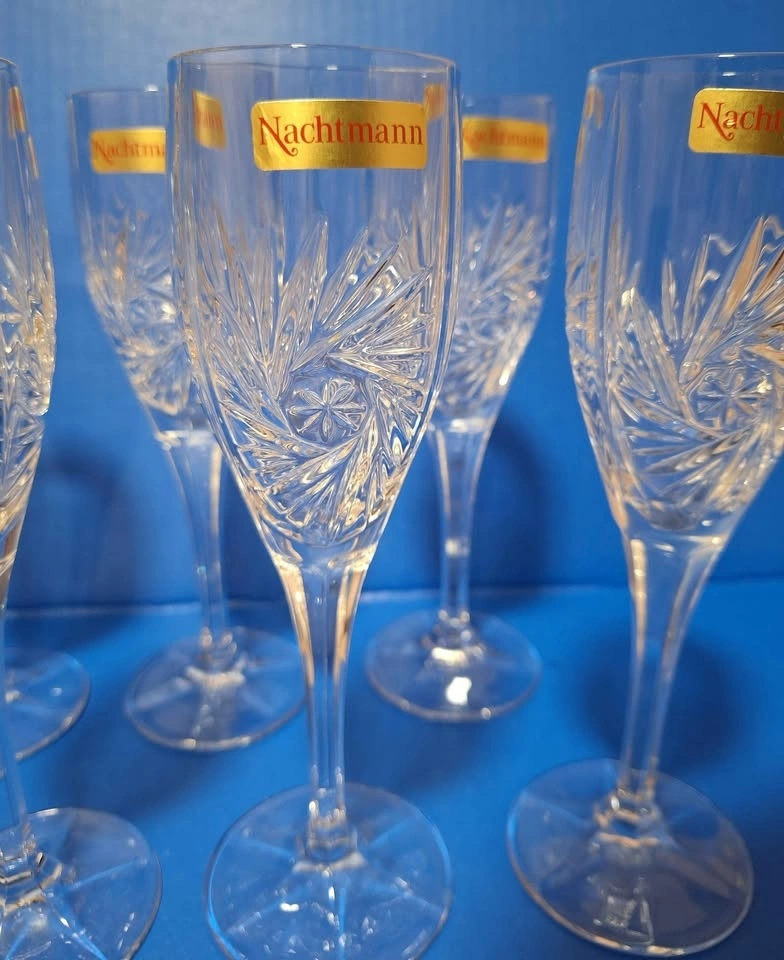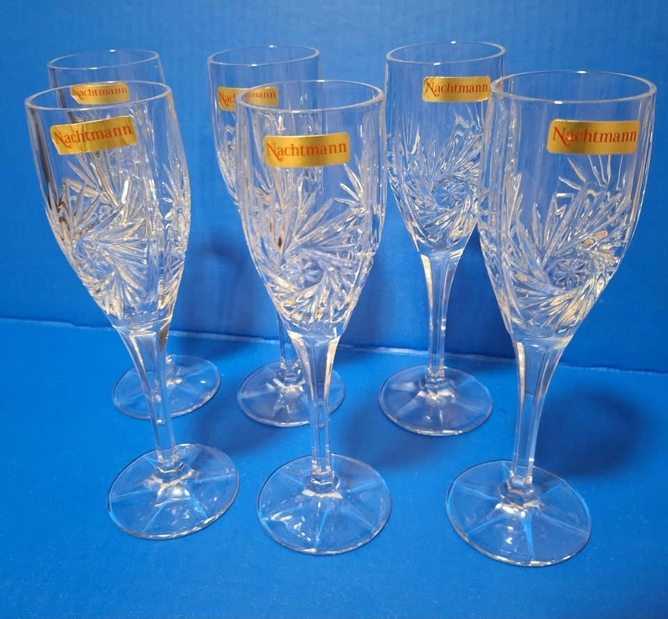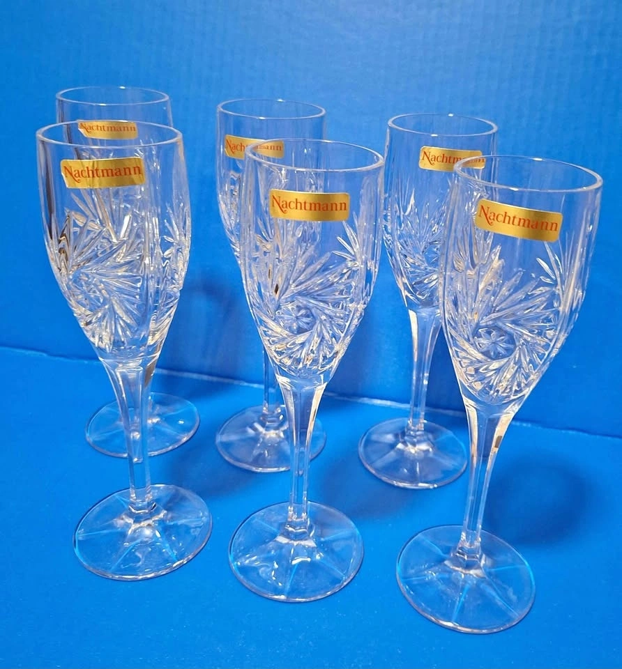 6 NACHTMANN Crystal Astra Champagne Flutes -MINT-