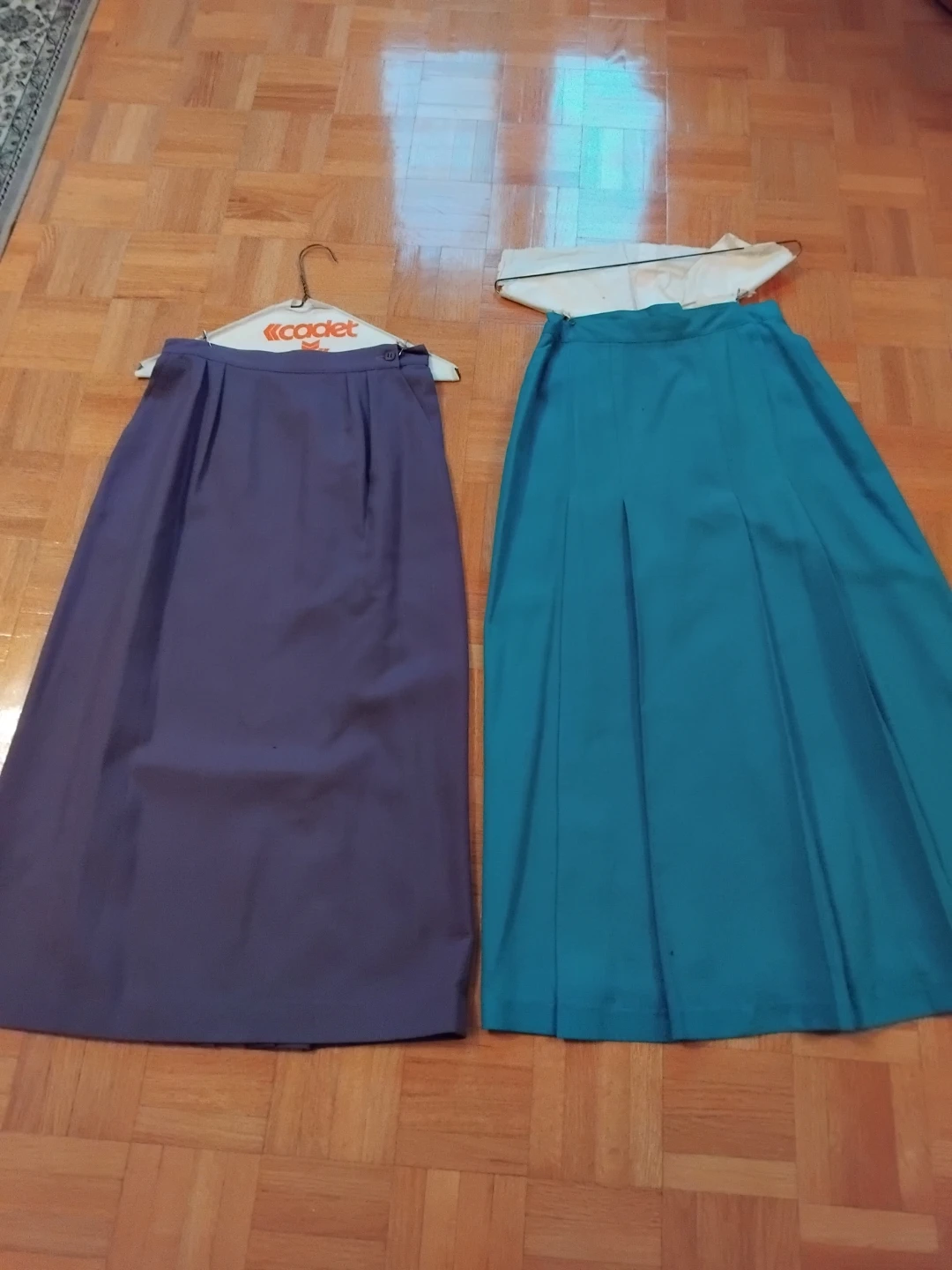 Selling two skirts! You'll get one in blue, one in purple. They're in great condition and ready for a new wardrobe.