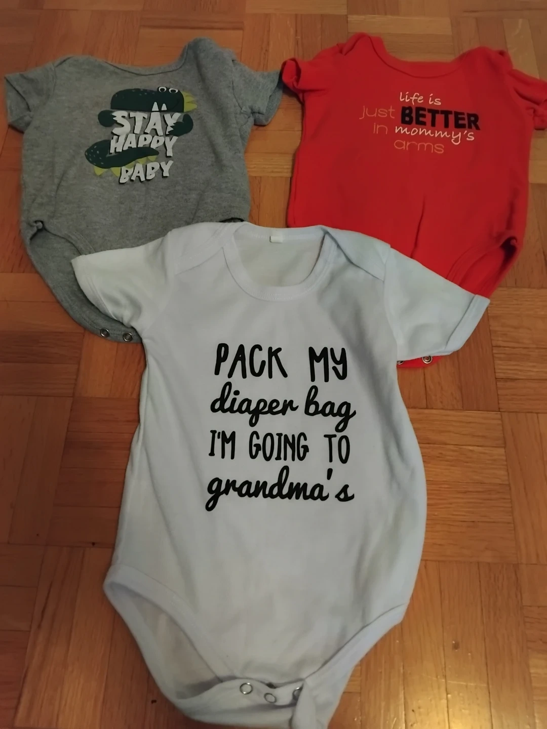 Selling a set of three baby onesies.