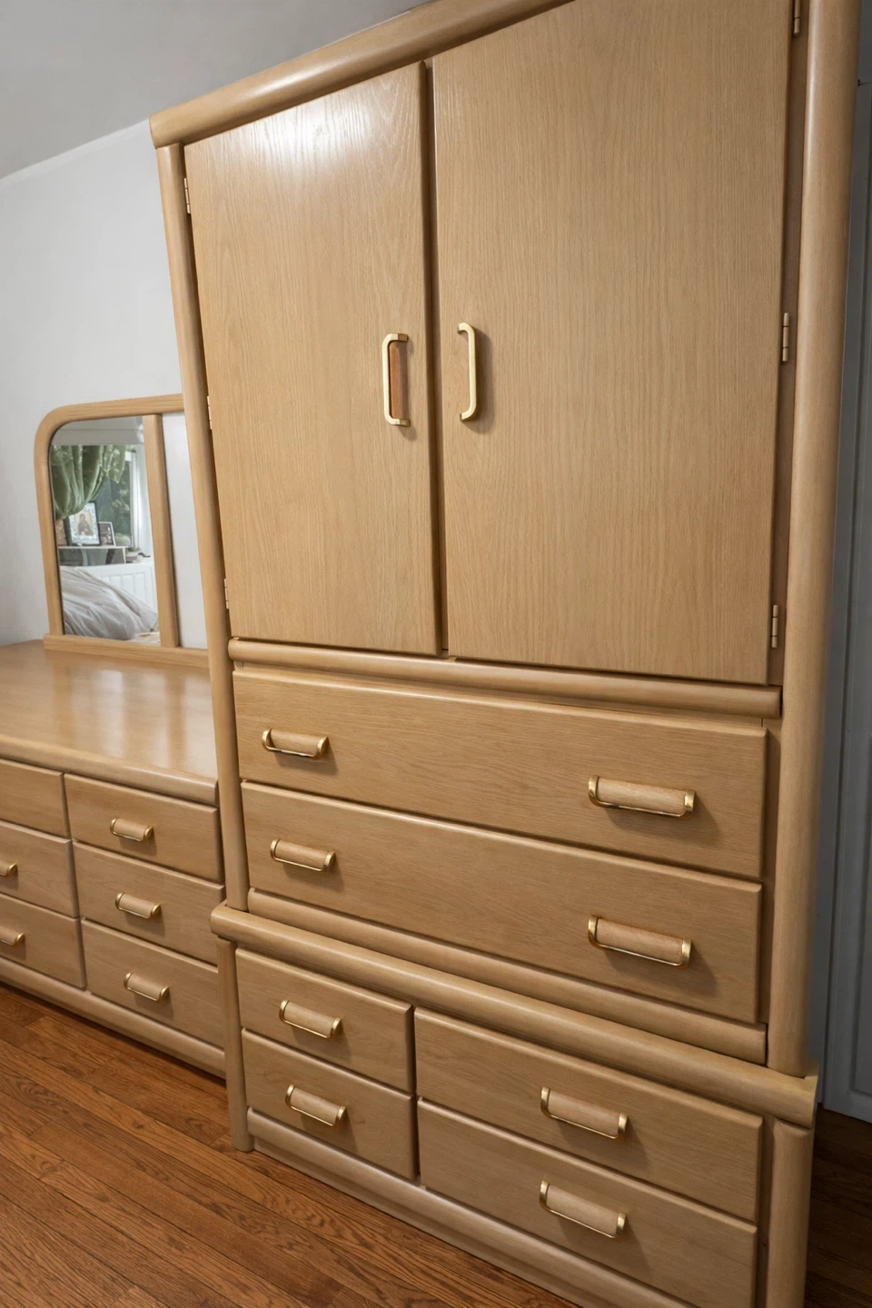 I’m giving away this set of 3 nightstand closet and drawers away since I am getting rid of a lot of older furniture. It’s as you see, it is abit lived in and not very modern but honestly its super sturdy with strong pieces made of very high quality wood.