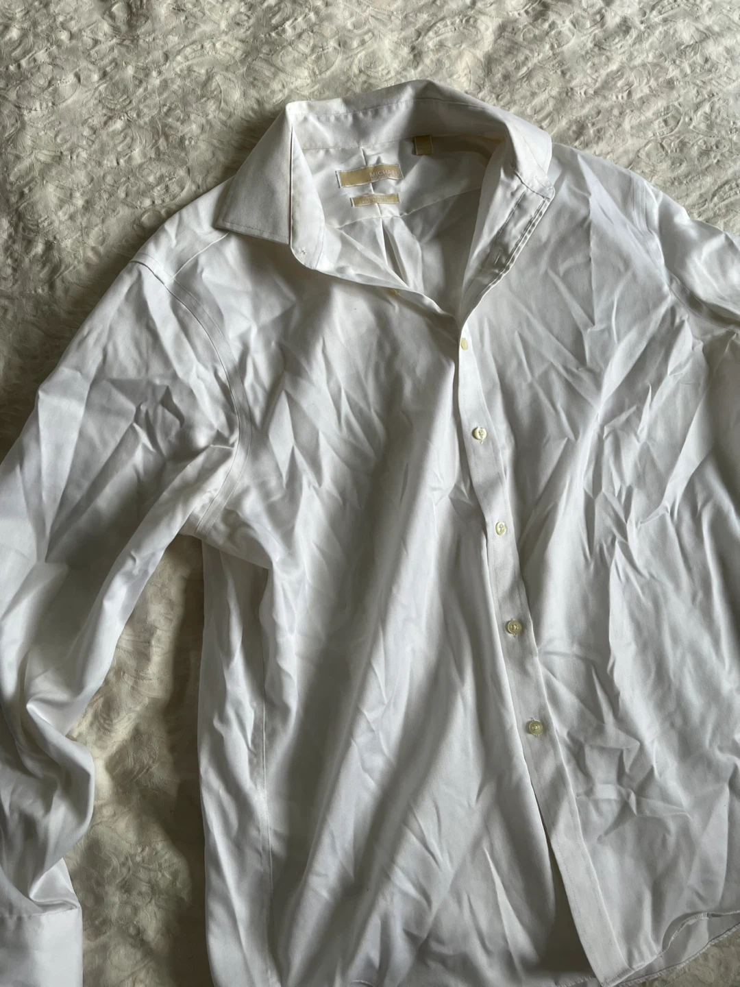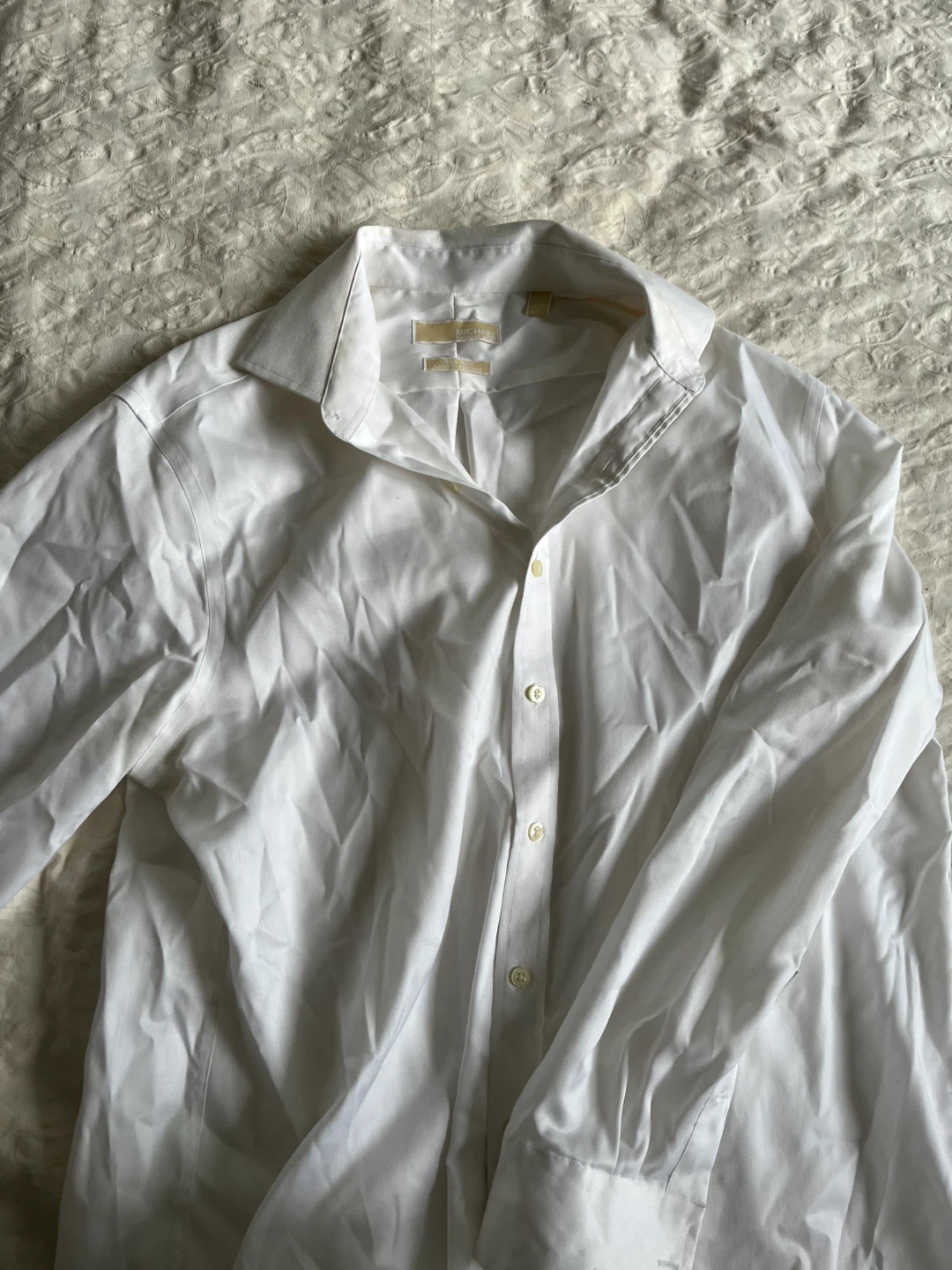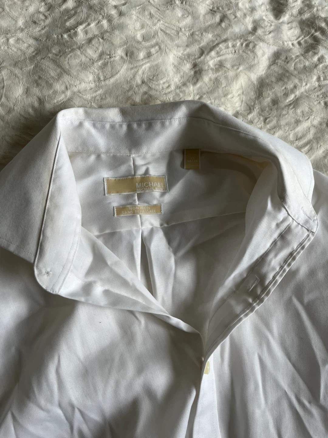 Selling a gently used Michael Kors dress shirt in white. It's a size 17 1/2 neck (men’s sizes are wack) and in great condition.