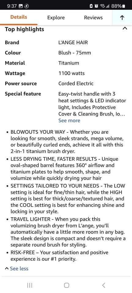 L'ANGE HAIR Le Volume 2-in-1 Titanium Brush Dryer Blush | Hot Air Blow Dryer Brush in One with Oval Barrel | Hair Styler for Smooth, Frizz-Free Results for All Hair Types (Blush - 75mm