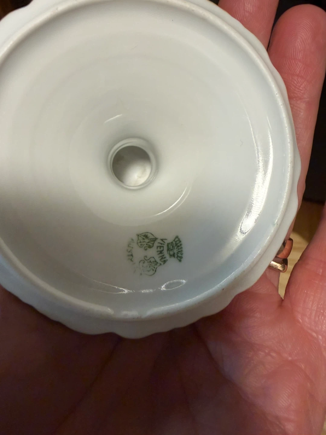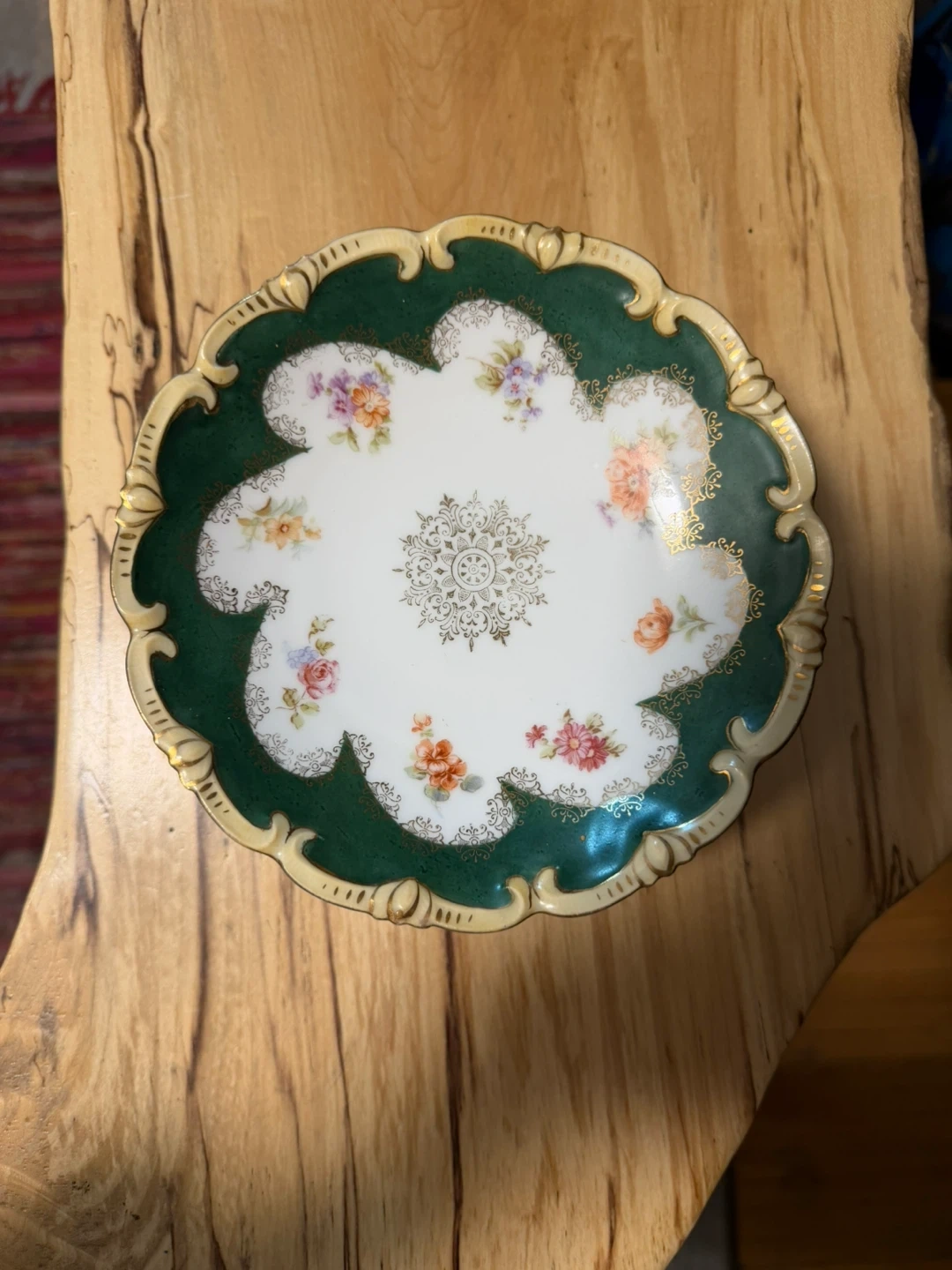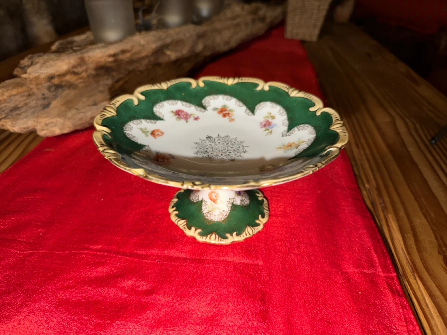Selling a lovely vintage Vienna Austria pedestal dish. It features a beautiful floral design with a green and gold trim. Perfect for displaying treats or adding a touch of elegance to your home!